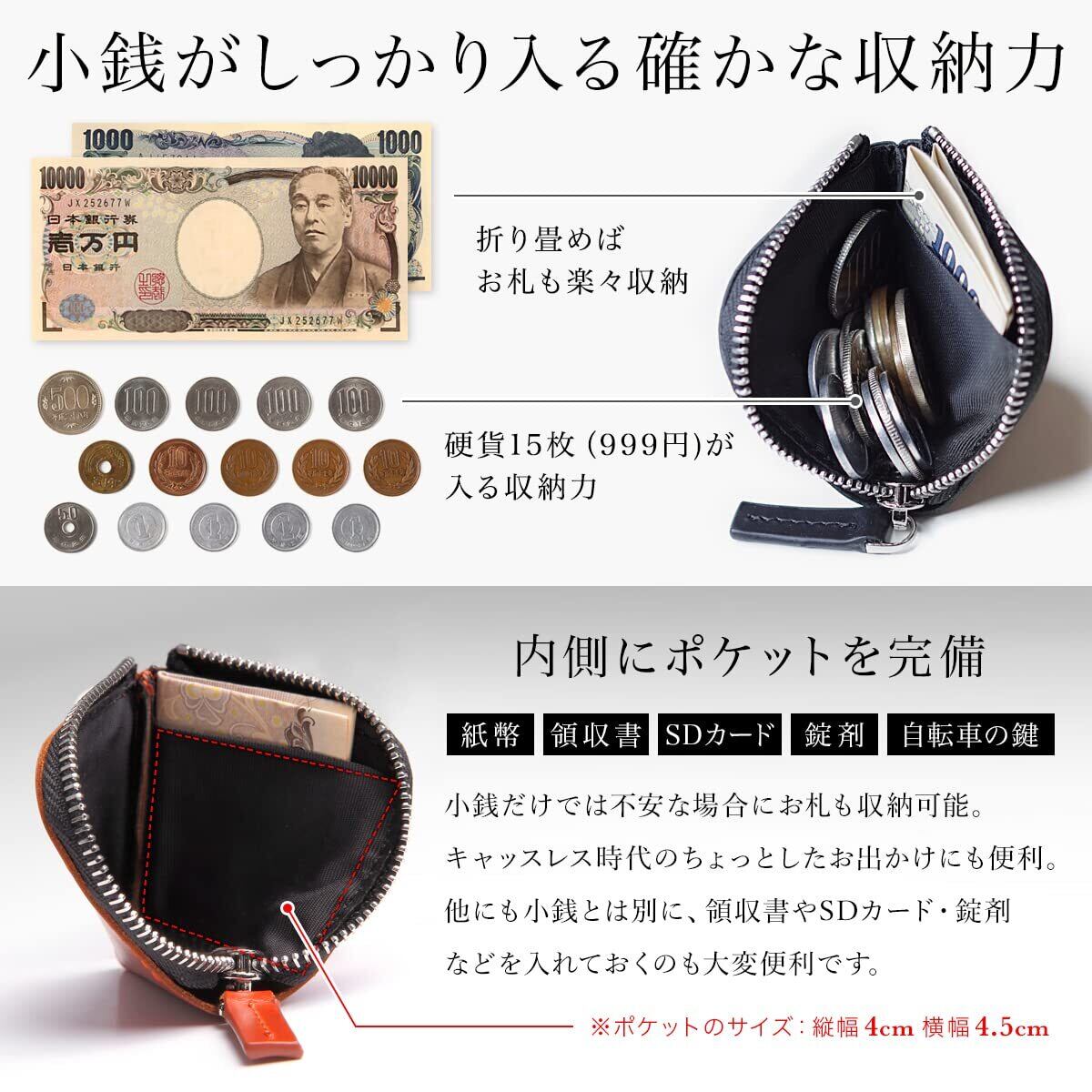 【見た目以上の収納力。お札も入る親切設計】 コンパクトなボディに、見た目以上の収納力。500円玉1枚、100円玉4枚、50円玉1枚、10円玉4枚、5円玉1枚、1円玉4枚、最大15枚「999円分」の小銭が入ります。内側にはポケットも完備、お札を折りたたんで収納できるので、これ1つでちょっとしたお買い物はO K。