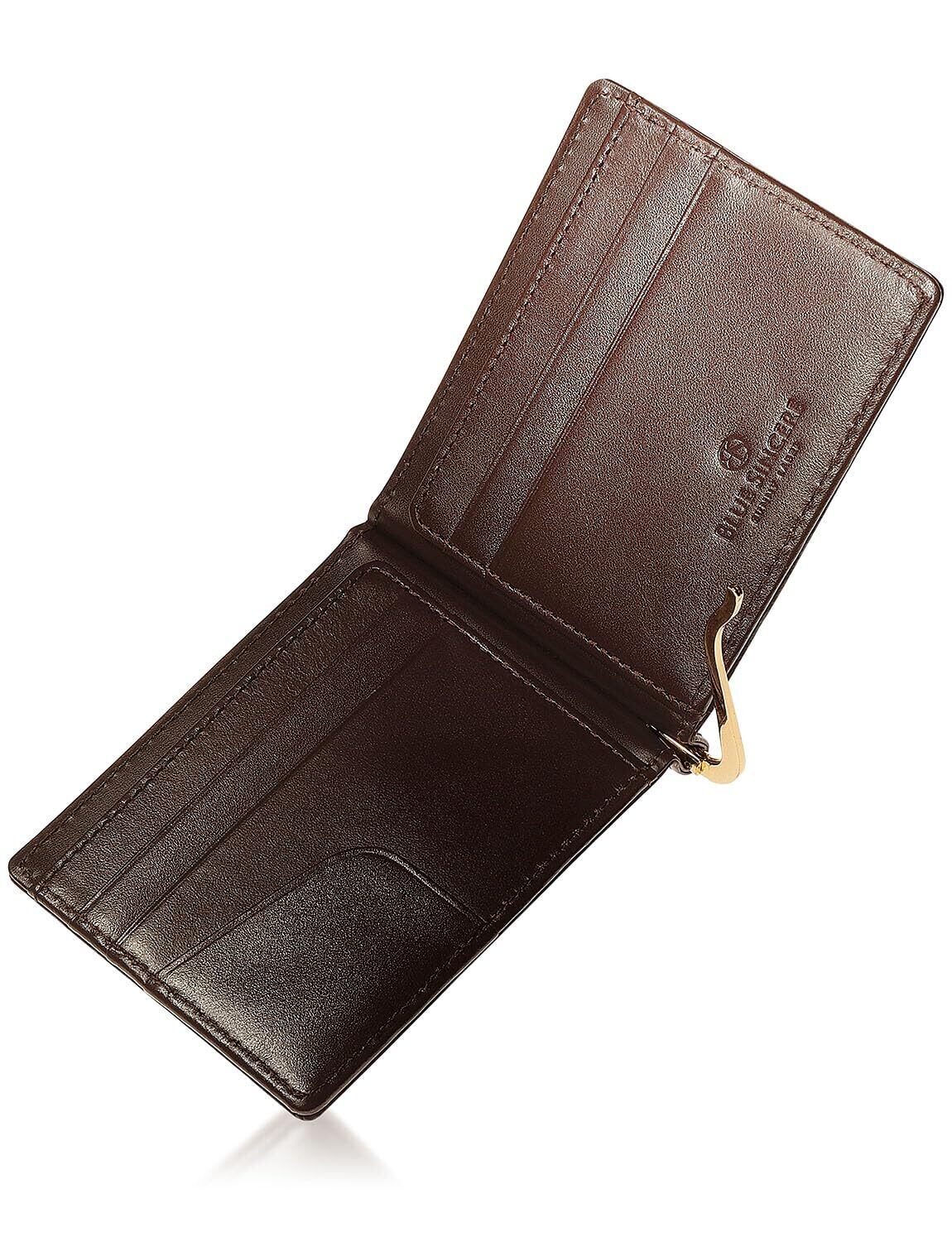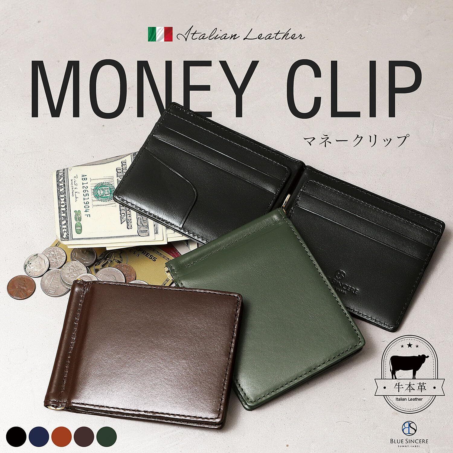 [BLUE SINCERE] マネークリップ 本革 イタリアンレザー 二つ折り財布 札入れ 薄型 ミニウォレット カードケース パスケース ICカード メンズ / IMC1 (ダークブラウン)