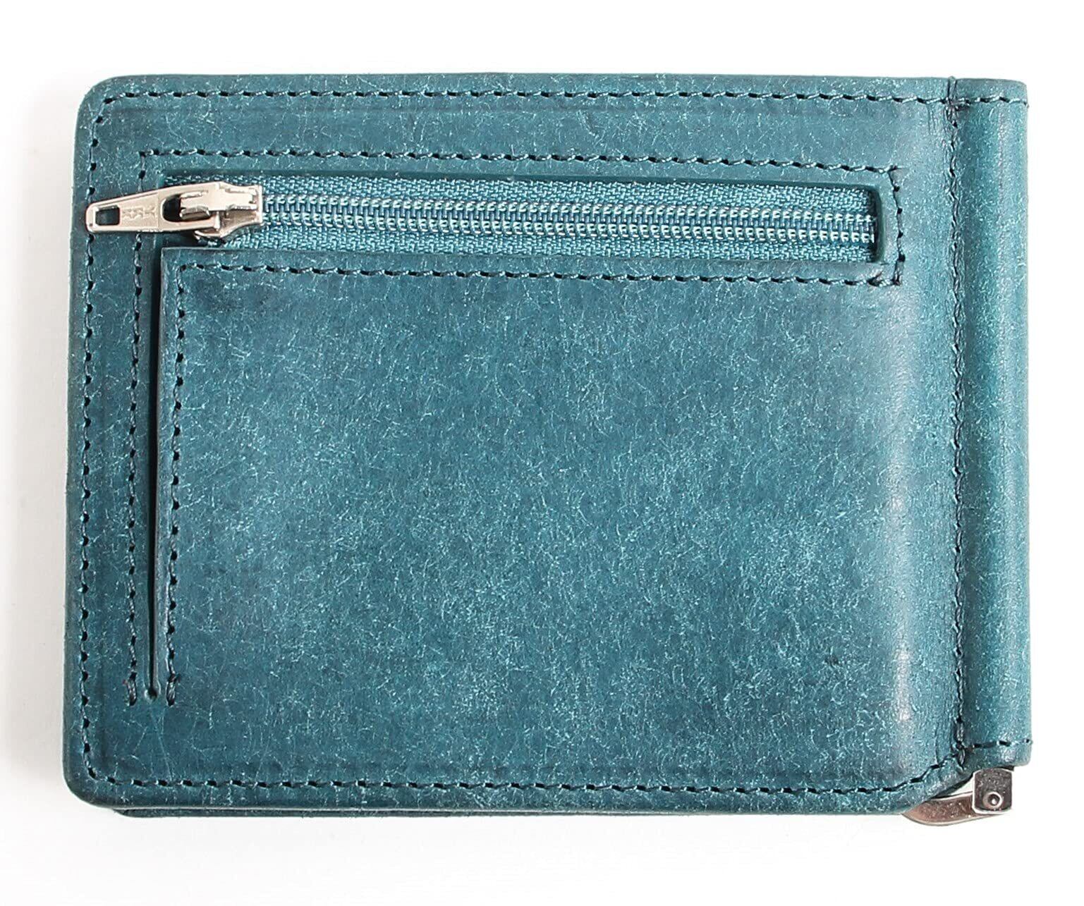 【背面にはファスナー付きコインポケット】YKKのファスナーを使用したポケットには約15枚程度の小銭が入ります。片マチになっているので、開口部が大きく開き取り出しやすさ抜群。マネークリップを初めて使われる方にも安心の機能です。