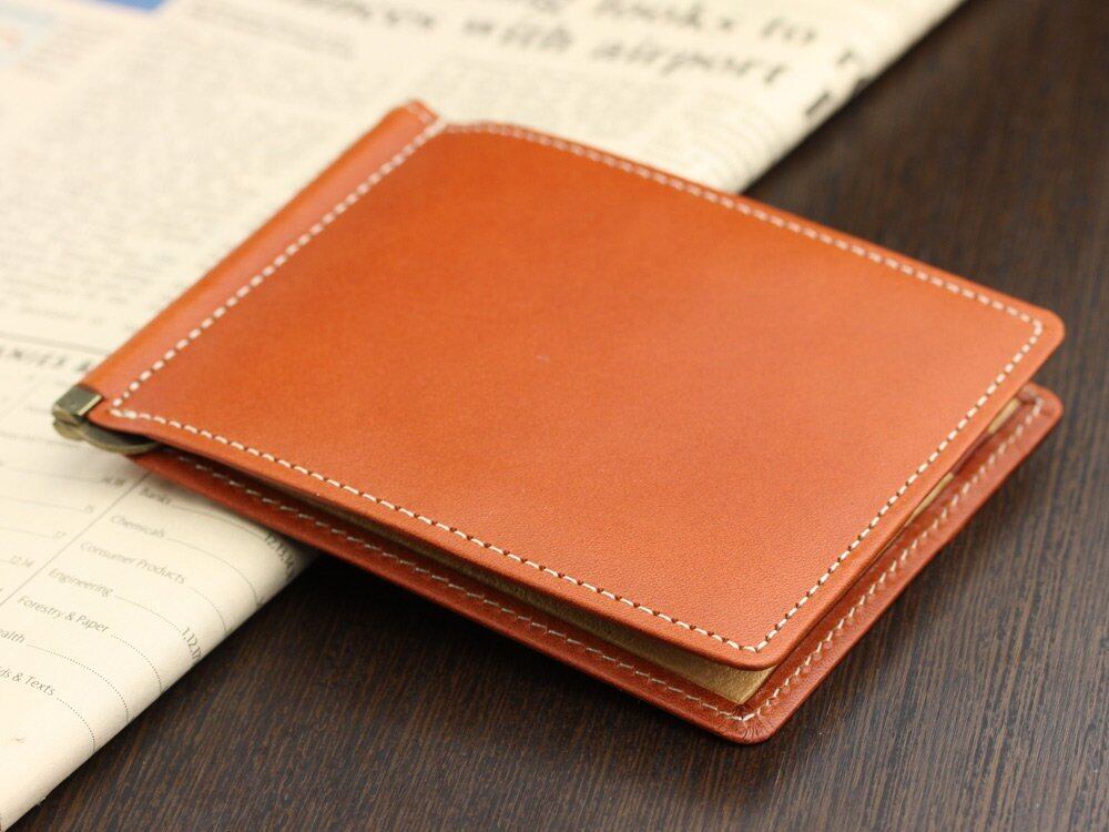 日本最高峰の植物タンニンなめし牛革「栃木レザー」の札ばさみです。 天然の革の素材感を大事にしたナチュラルな素材。 革を使い込む「エイジング」を楽しめるアイテムです。 日本国内で職人の丹念な仕事によって作られた逸品です。 お札をスリムに収納できる札ばさみ。カード入れは3枚分つき。アンティーク仕上げの金具を使用。