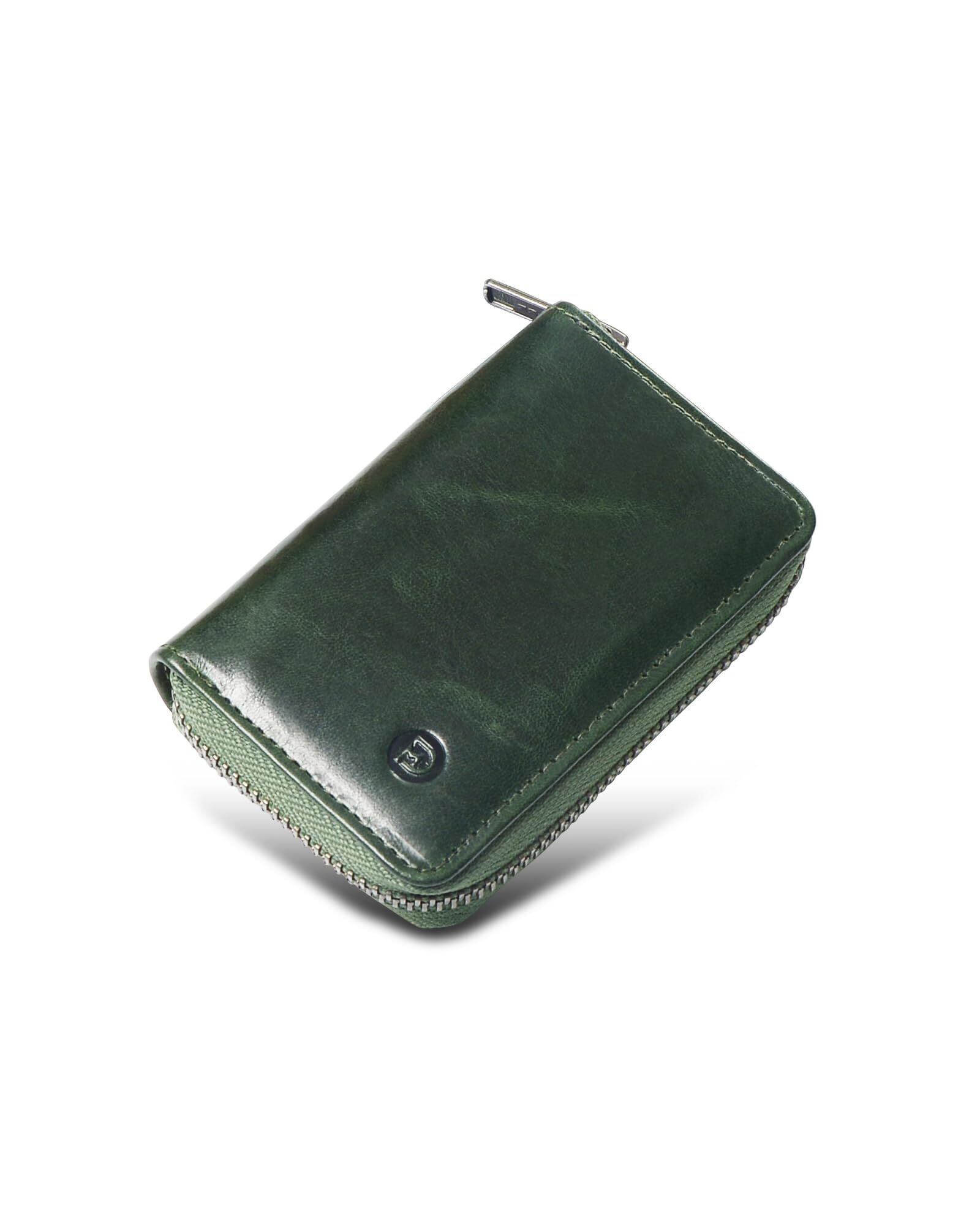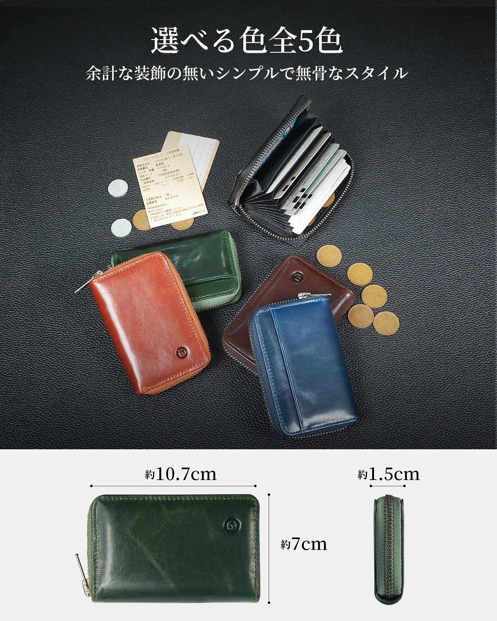 [Modiko] カードケース メンズ クレジットカードケース 本革 日本製 姫路レザー 大容量 じゃばら カード入れ スキミング防止 ファスナー (グリーン)