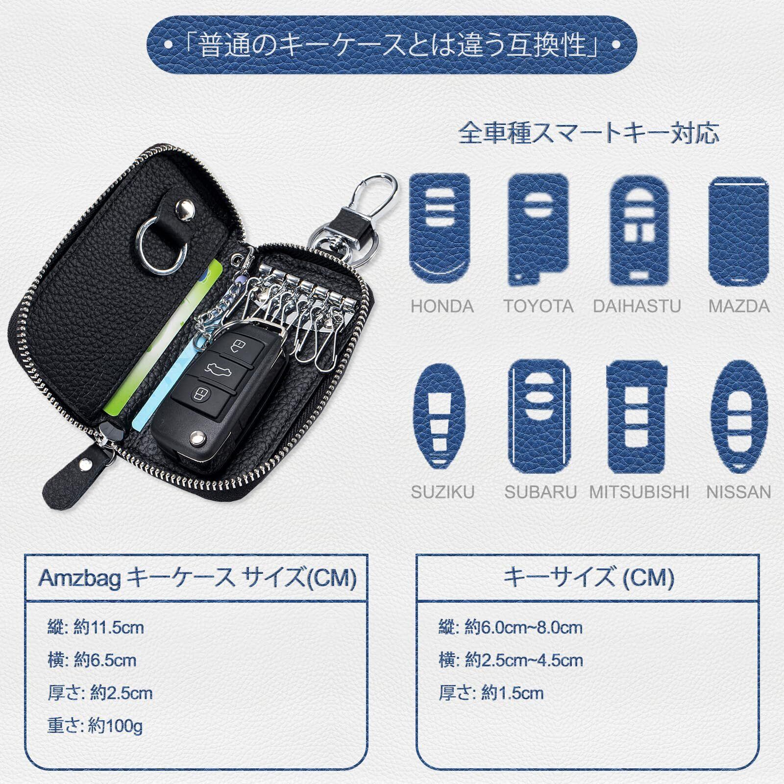 [Amzbag] キーケース メンズ レディース 本革 カードケース 6連フック スマートキーケース 車 小銭入れ 360°回転カラビナ ワンタッチキーリング キーホルダー付き パスポートケース 多機能 大容量 防水 おしゃれ ギフト