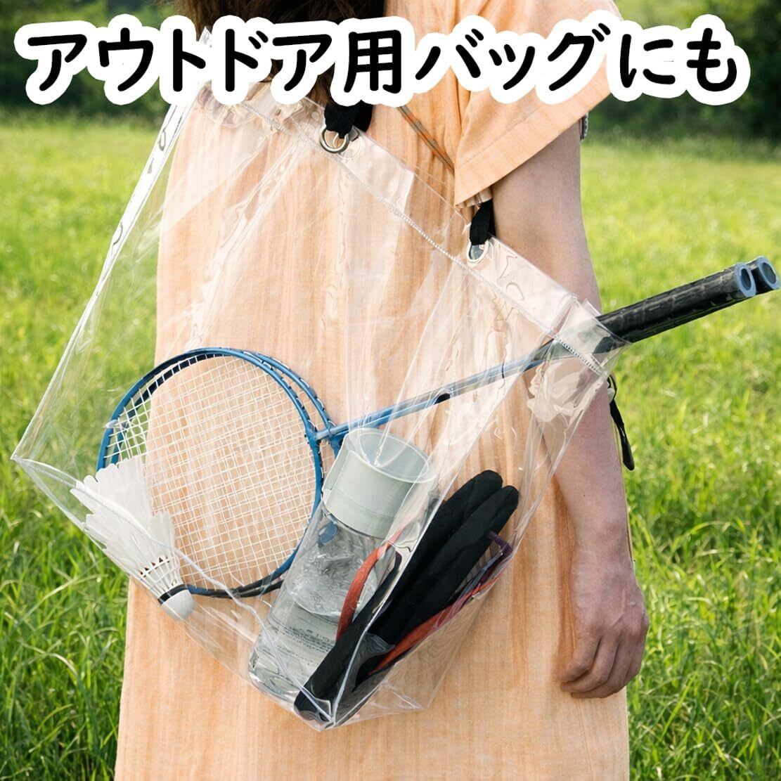 ビニールバッグ 透明 丈夫 トート クリアバッグ 手提げ 防水 推し活 痛バッグ プール 大人 LL スクエア ショルダー W40×D15×H40cm 大きめ 仕事用 大容量 MCB-4040