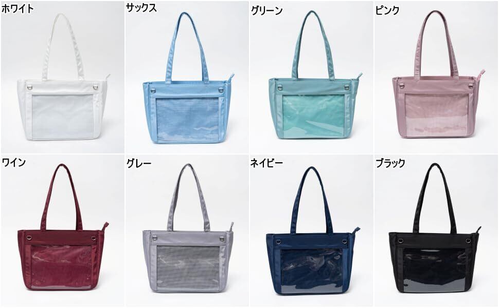 ・ポリエステル素材で汚れにくく軽量です。 ・両サイドのDカンで自由にアレンジ! 別売りの【WG23AW11-G0002 ときめきDIYセットS】と 合わせて、リボン&フリルのデザインバリエーションが楽しめます。 ・缶バッチを付ける、メッシュ×本体生地のリバーシブルシート付きです。 隠したい時はさっと裏返しに! バッグ内側からシートはバッグ内側から出し入れするのでクリア面がキレイに見えます。 ・便利な内側ポケット メッシュポケット、ペンライトバンドが付いています。 グッズの持ち運びにやさしいフワフワポケットも! ・底面汚れを軽減する底鋲付きです。