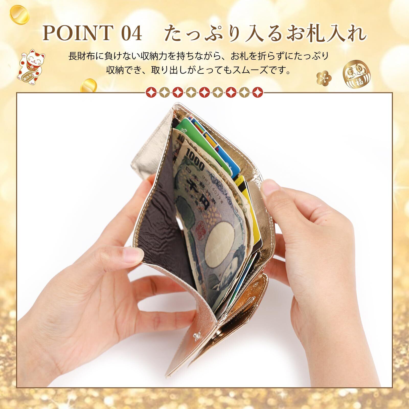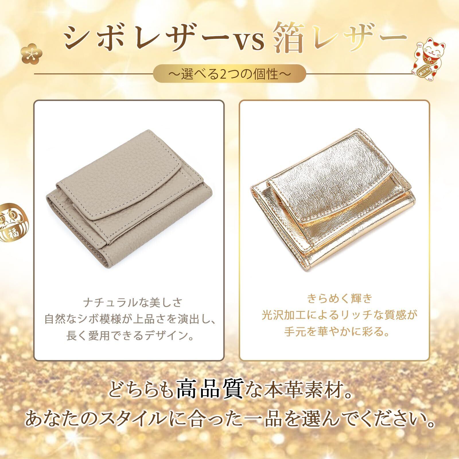 [imeetu] ミニ財布 三つ折り財布 レディース メンズ 本革 小さい財布 スキミング防止 小銭入れ付き みつおり 牛革 軽量 コンパクト RFID (箔レザー ゴールド)