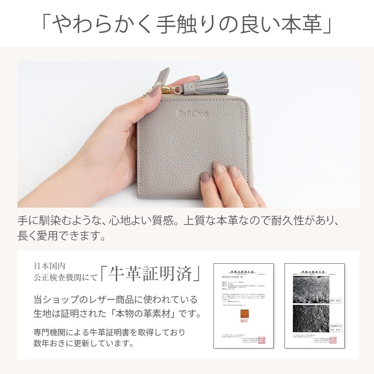 【手触りの優しい本革仕様】 表地には上品なシボ感が魅力の牛本革を贅沢に使用しています。同素材で仕上げたタッセルはお好みで付け外しOK。小さめバッグやポケットにも収まるサイズ感は、メイン財布にもサブ財布にもお勧めです。