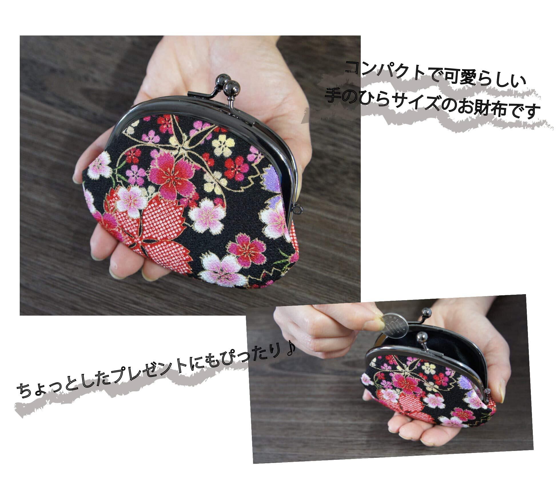 [ビアンデュ公式] 3.3丸がま口財布 小銭入れ ちりめん 和柄 日本製 京都 (桜吹雪)