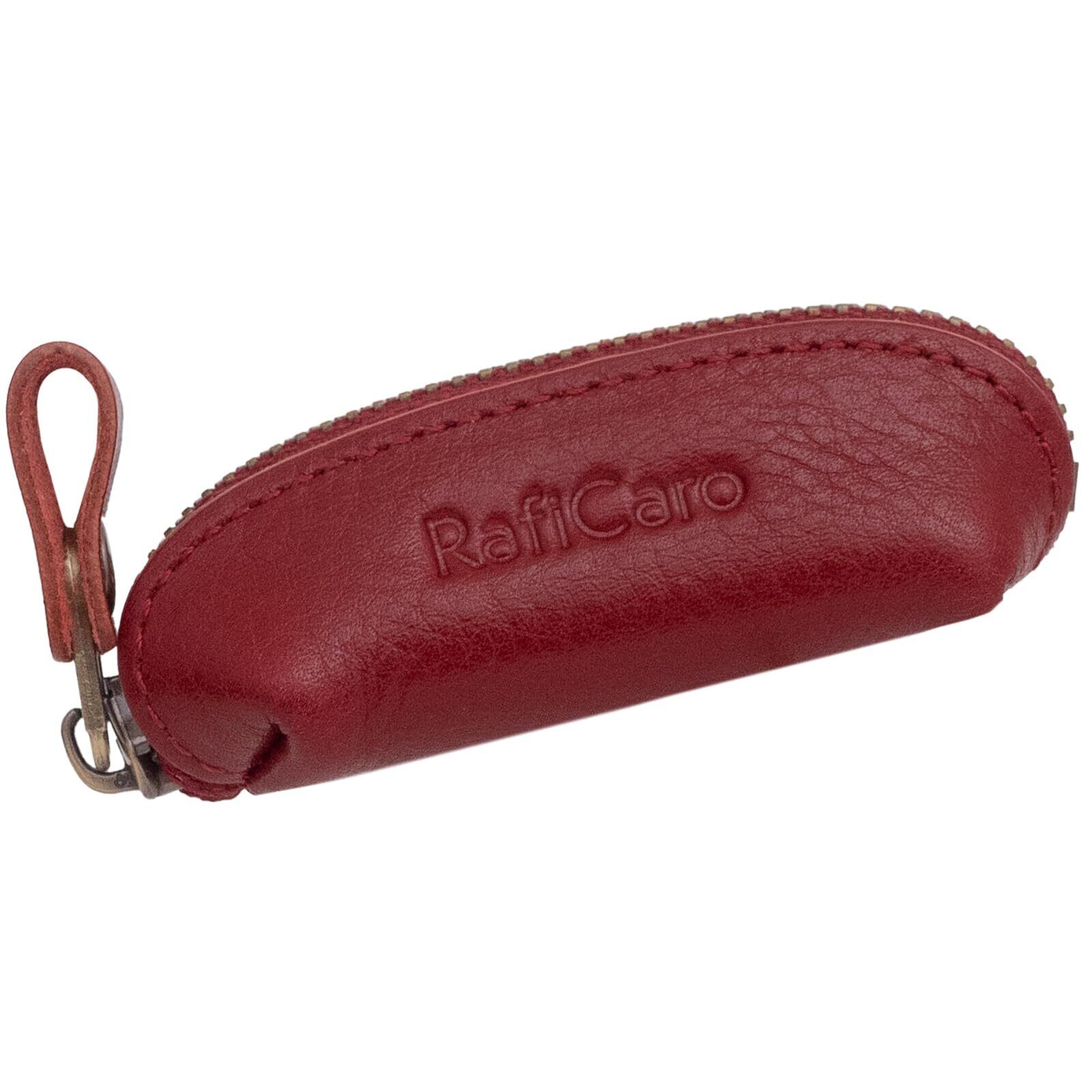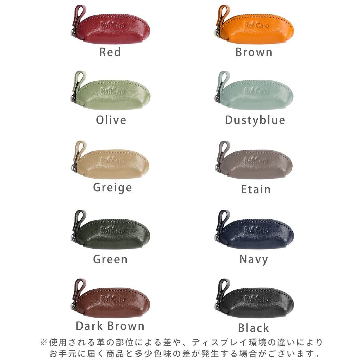 [RafiCaro] 小さい コインケース 本革 キーホルダー サイズ 短い ミニ 小銭入れ コンパクト イタリアンレザー レッド