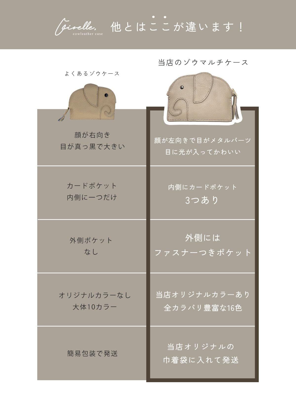 [ジゼル] ミニ財布 カードケース キーケース コインケース 牛革 本革 マルチケース ポーチ ゾウ 財布 小銭入れ 薄い レディース 小物入れ 軽量 かわいい プレゼント キャラクター (グレージュ)