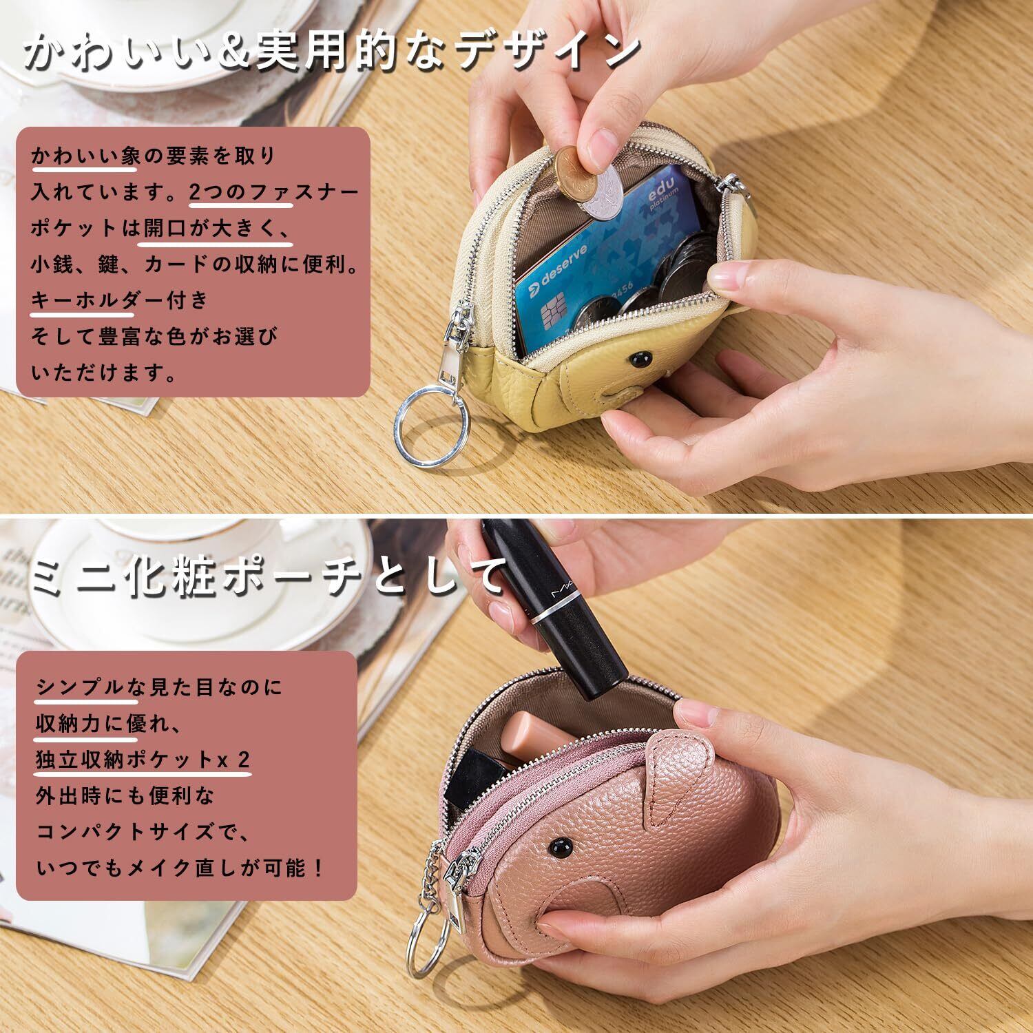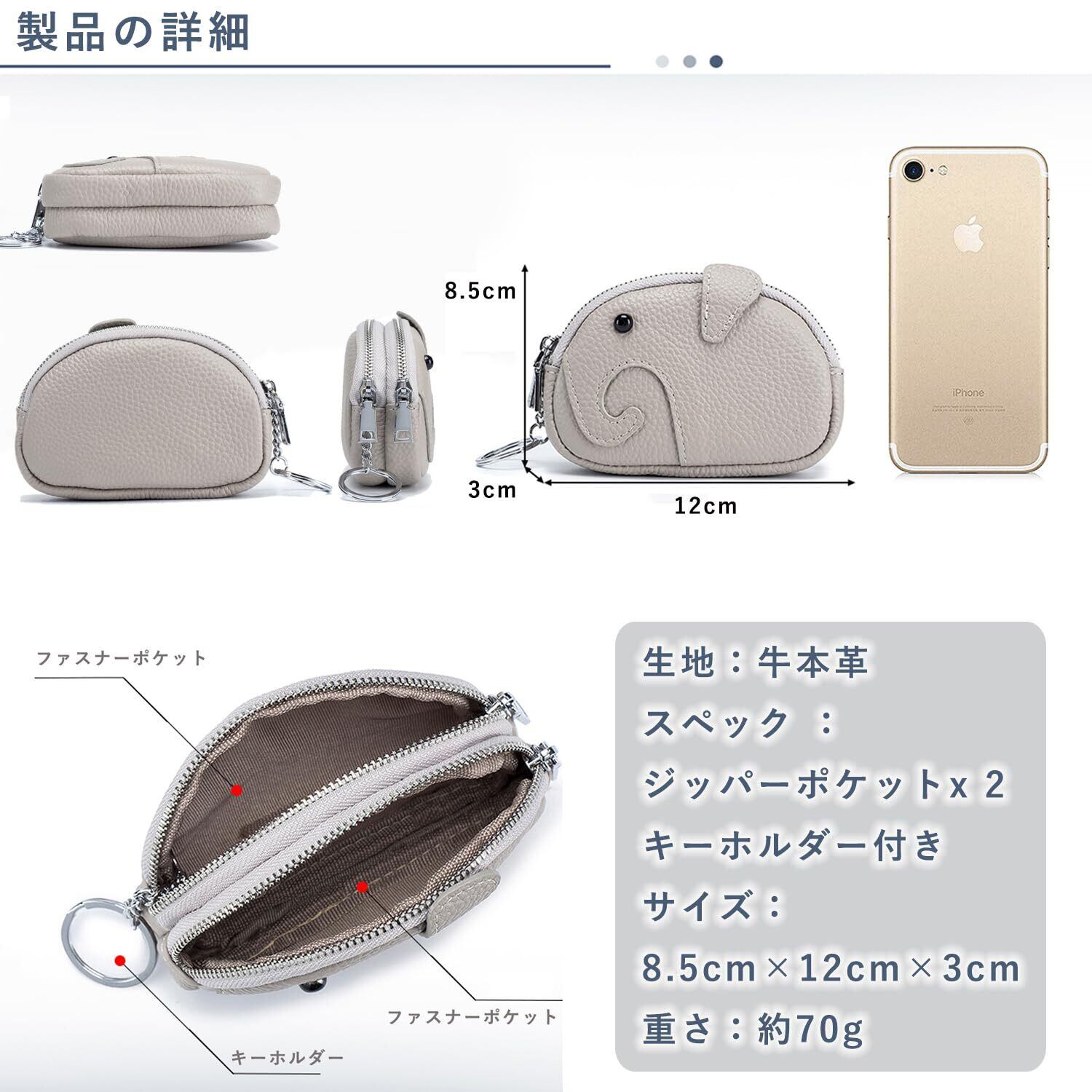 小銭入れ コインケース レディース ミニ財布 本革 可愛いゾウ ジッパーポケットx 2 コンパクト 手持ち キーリング付き (パープル)