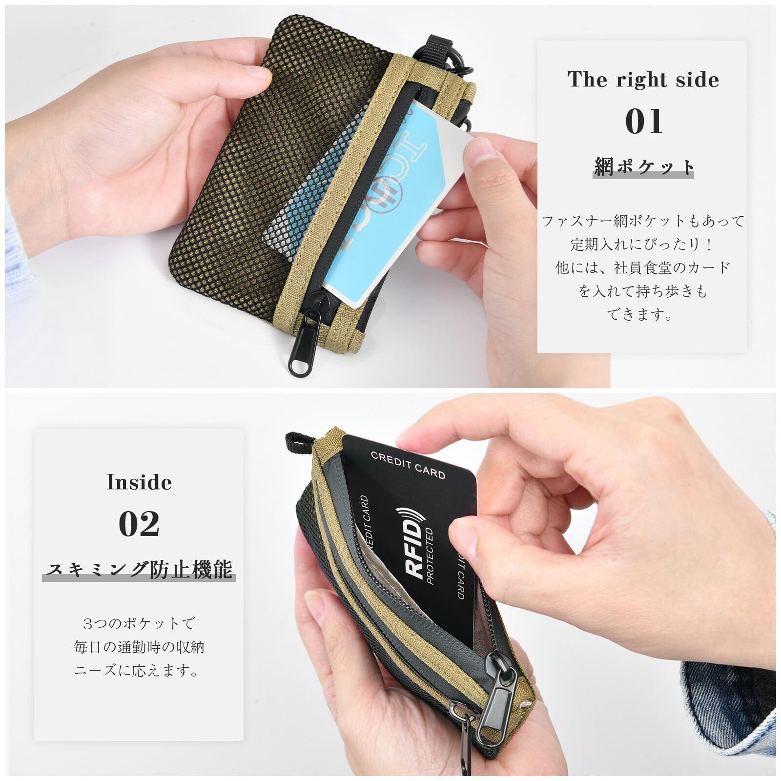 【定期入れ・コイルストラップ付き・機能性】小銭はもちろん、ICカード、切符、免許証、ポイントカード、鍵なども収納できる多機能な小銭入れです。ナスカンが付いているので、ベルトなどにぶら下げてポケットに入れることができます。ナスカンで安全性を確保し、普段使いに適しています。 手を伸ばせばポケットからパスケースを取り出せます、付属のコイルストラップが紛失を防ぎ、使い勝手も抜群:最大70cmまで伸びます、すぐに出し入れできます。