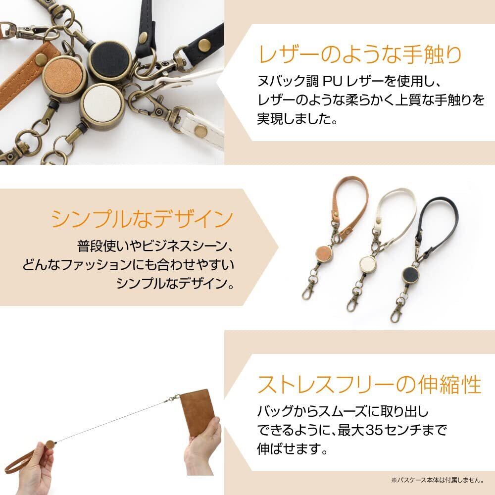 [Pretimo] リールストラップ リール付き 伸びるキーホルダー リールキーホルダー キーリール レディース メンズ PUレザー 白 黒 茶色