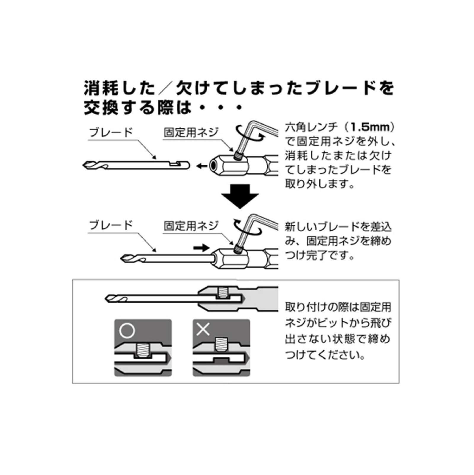 ●注意:熱処理されたネジには使用できません、ビットは手回し専用ですので必ず差替ハンドルに装着し使用ください
