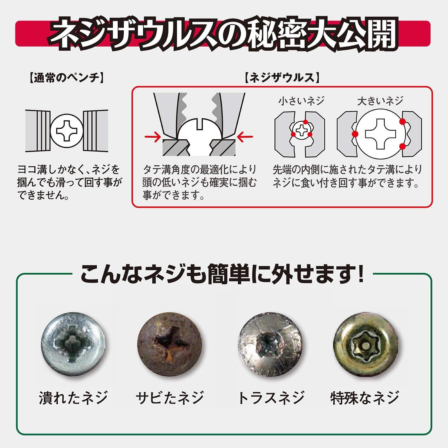 トラスネジにも対応し、ネジにしっかり喰いつきます。