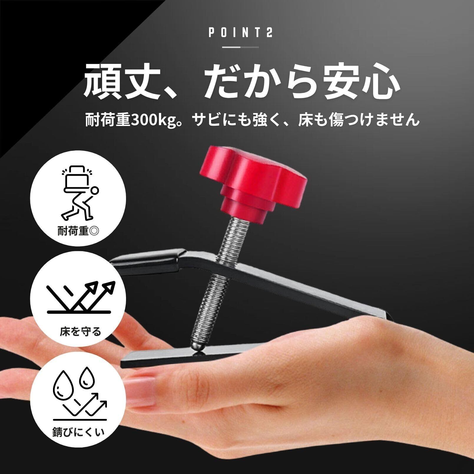 1個あたり約150gと軽量ながら、耐荷重は驚きの300kg!大型ドアの施工から家具の設置補助まで、さまざまな用途で活躍。細かい作業にこだわりたい方やDIYを楽しむ方にぜひ使っていただきたいアイテムです。