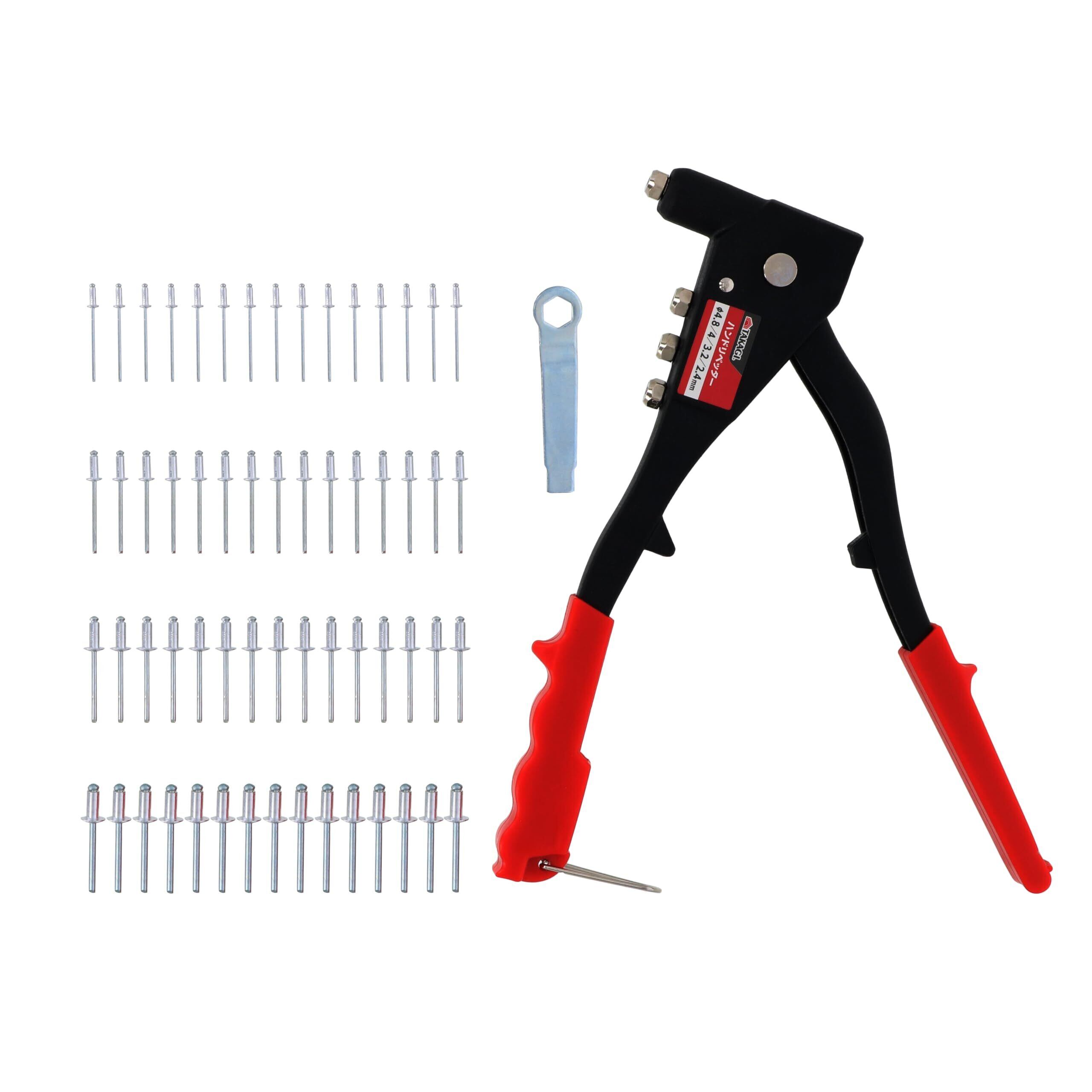 高儀(Takagi) ハンドリベッターセット リベット60本付 工具 薄鉄板 アルミ板 樹脂性の板材 締結 修理 力が入りやすいエルゴノミックハンドル