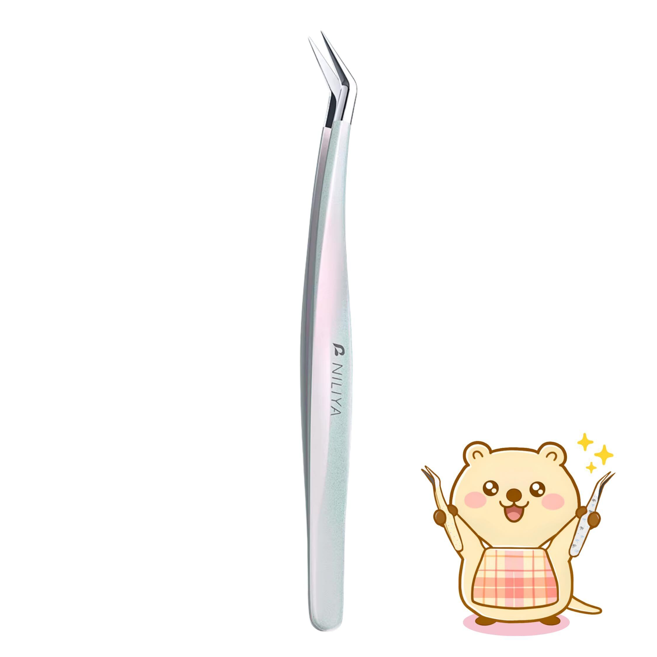 クオッカストア【精密ピンセット 全長:132mm 】ケース付き 1本 (シール ステッカー 作業 ステンレス ハンドメイド 模型 工具 極細) (E.ピンセット(柄:オーロラホワイト))