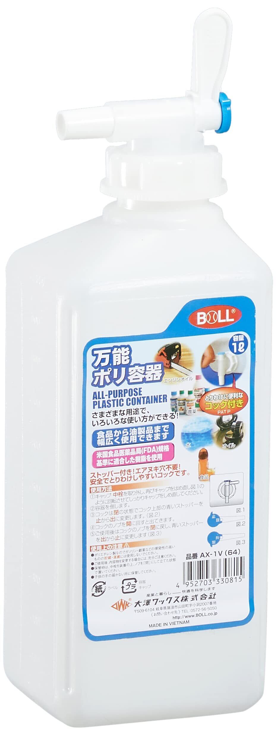 大澤ワックス BOLL 万能ポリ容器 コック付1L AX-1V