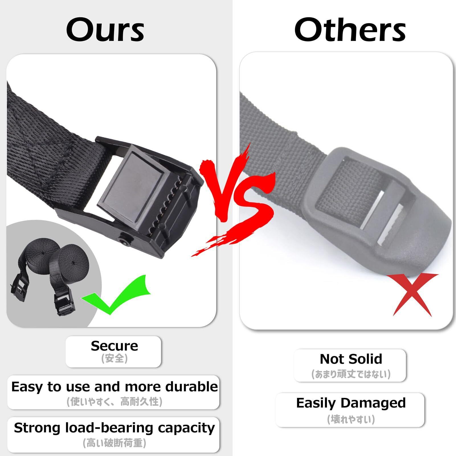 【材質】荷締めベルトは強化したポリプロピレン素材を採用していて、強度、耐摩耗性に優れています。バックルは電気泳動されたメタル、錆びに強くて耐久です
