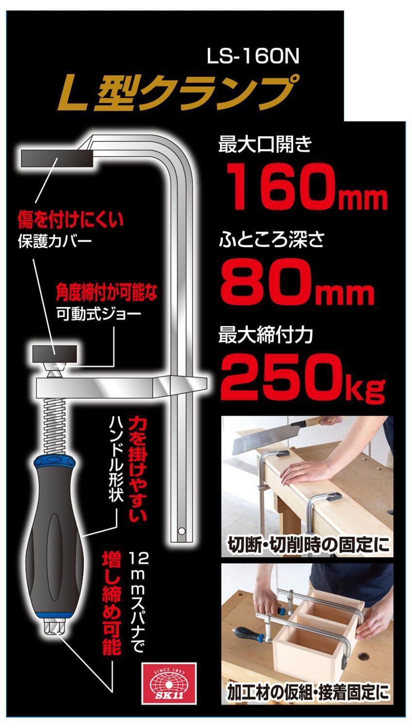 SK11(エスケー11) L型クランプ 口開き160mm 締付力250kg LS-160N