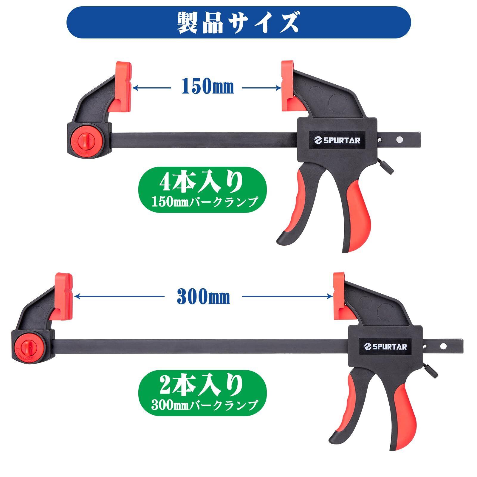 Spurtar クイックバークランプ 六本組 クランプ 木工用 150mm&300mm 最大締付力60㎏ クイックリリース バークランプ 1セット2役 スプレッダー 木工用 金属加工 工芸品 DIY 木材 金具