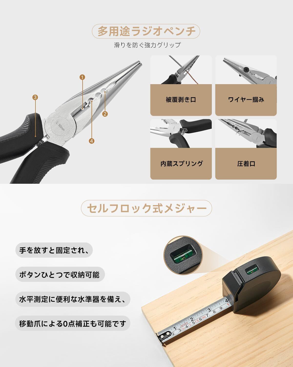 【DIY・家具組立・家電修理・住まいの整備に対応】 家具の組み立て、家電の簡易修理、住まいのメンテナンス、オフィス設備の調整など、幅広い作業シーンで活躍。初心者から経験者まで使いやすい実用的なツールキットです。