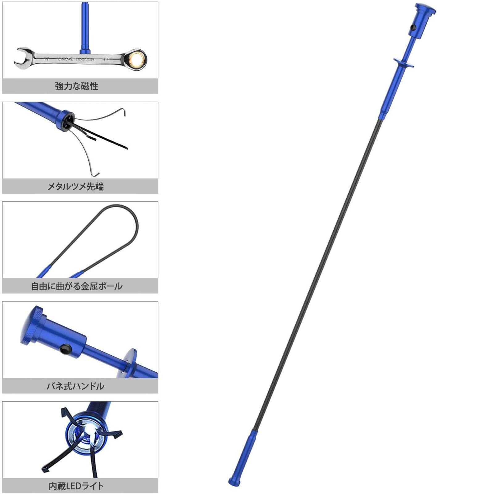 Housolution ピックアップツールLEDライト付 マグネット4本爪 自在に曲がる 工具 ゴミ 髪の毛 掃除 詰まり除去 Blue