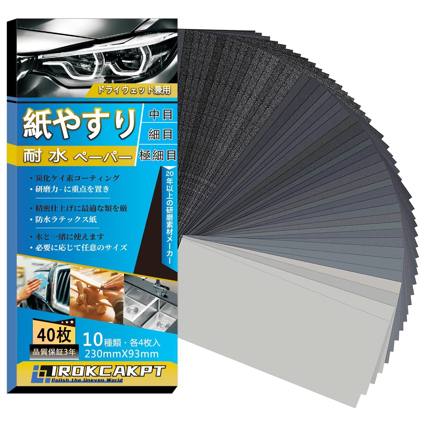 紙やすり 耐水ペーパー 10種40枚セット 紙ヤスリ 230 mm x 93 mm サンドペーパー(240 400 600 800 1000 1200 1500 2000 2500 3000 各4枚)耐水ヤスリ,車 金属磨き 木工DIY作業に キッチンの掃に最適です