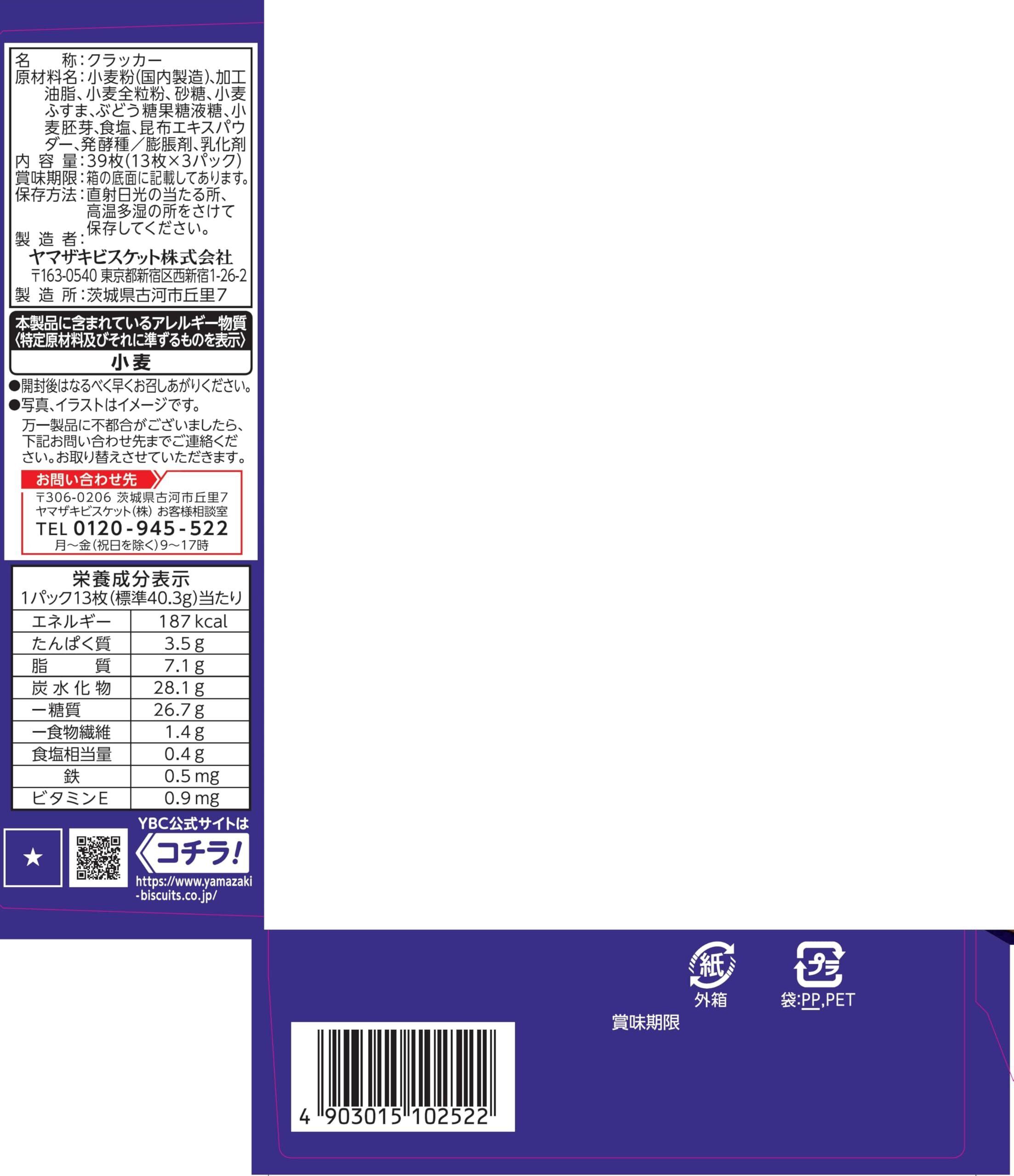 ヤマザキビスケット ルヴァン全粒粉クラッカーS 39枚×10個