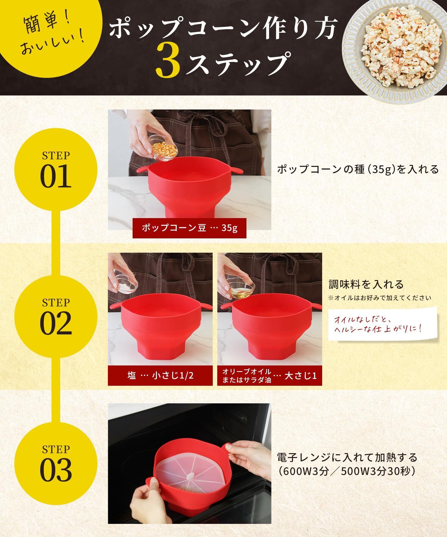 【レンジでたった3分!簡単調理】ポップコーン豆を入れて、電子レンジで(600Wで3分/500Wで3分半)加熱すれば、美味しさ弾ける映画館の味!アレンジすれば美味しさ無限大。