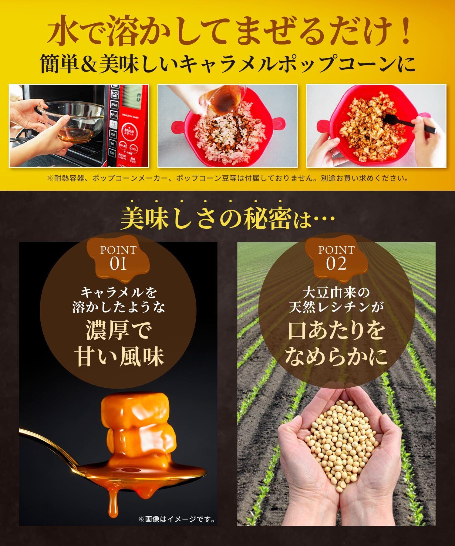 【電子レンジでとろーり】レンジで溶かしてポップコーンにかければ、みんな大好きキャラメルポップコーンの出来上がり!※ポップコーン豆、ポップコーン、その他調味料、調理器具は別売り。