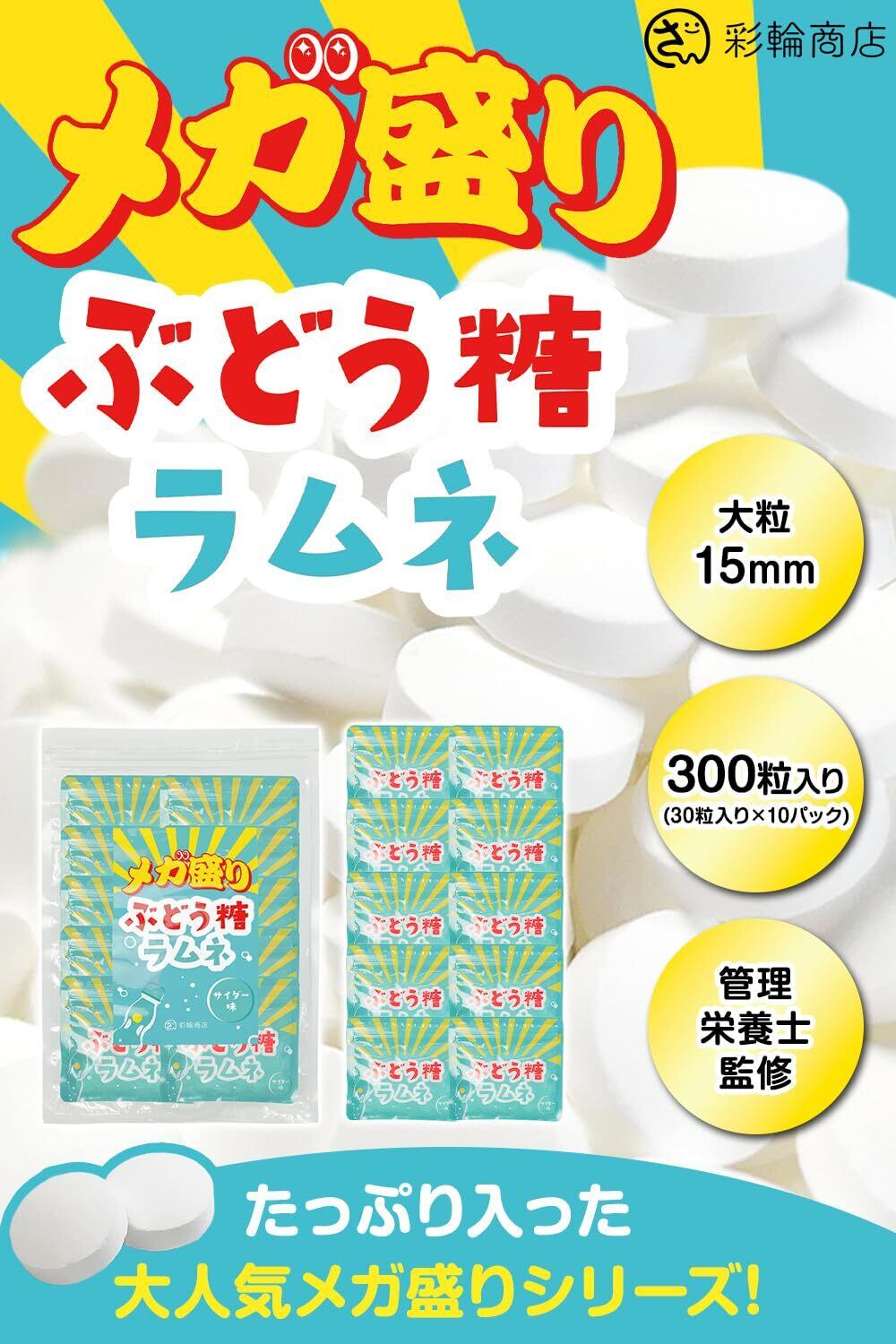 【管理栄養士監修】 彩輪商店 ぶどう糖 ラムネ メガ盛り 300粒 国内製造 個包装 大粒 ブドウ糖 駄菓子 業務用 お菓子 大容量 らむね おやつ タブレット (1個)