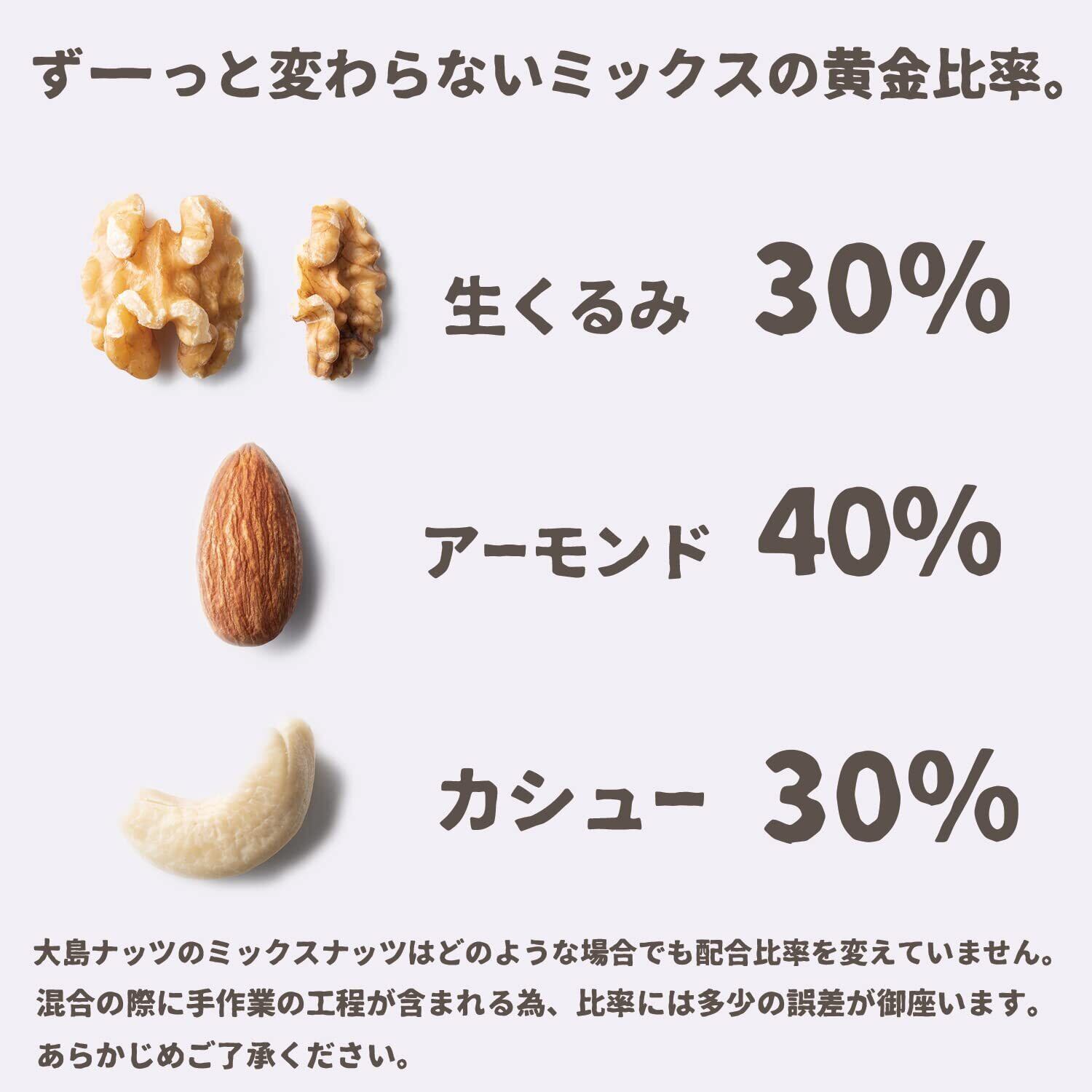 ミックスナッツ 素焼き 無塩 1kg 3種 均等配合(アーモンド くるみ カシュー)油不使用 大島ナッツ