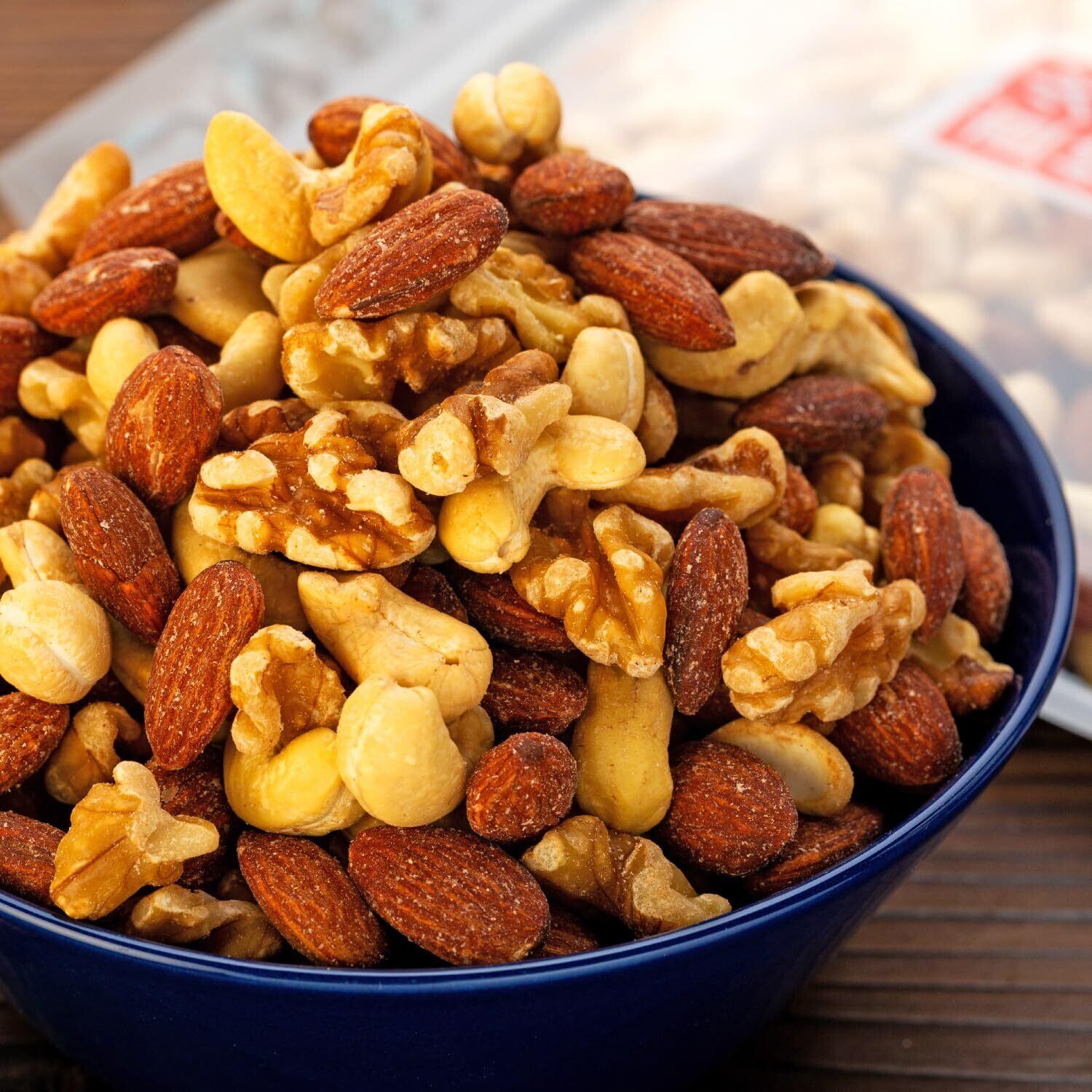 食塩・油 不使用 直火焙煎のミックスナッツ。アーモンド、生くるみ、カシューナッツの王道3種を組み合わせ。健康とおいしさのベストバランスを考えた配合となっております。特にアーモンド、カシューナッツは社内で直火焙煎を行い、直火ならではの香り・風味をお楽しみいただけます。