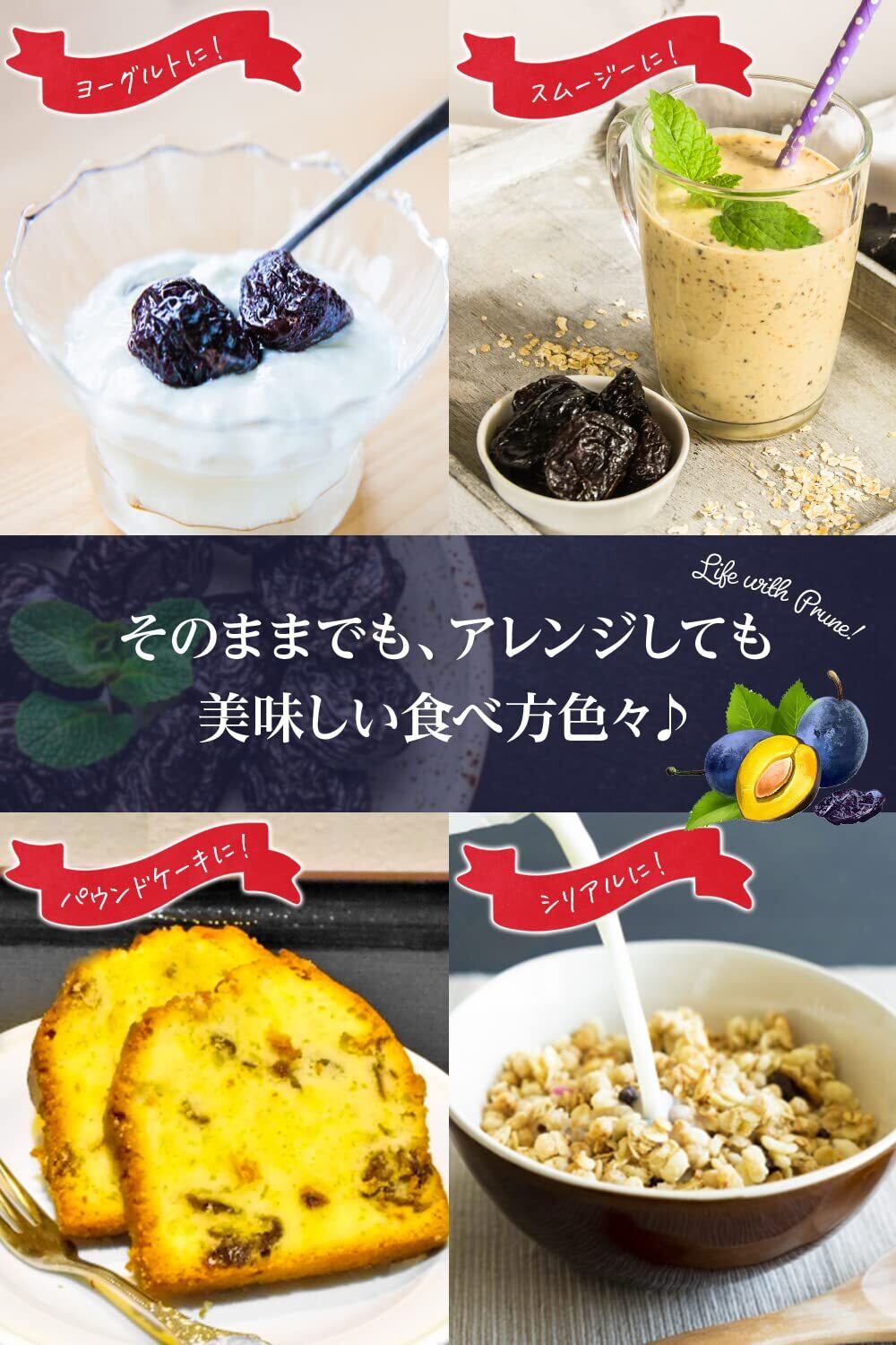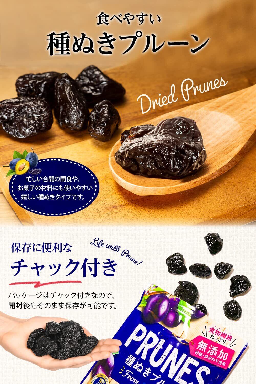 【体にうれしいスーパーフルーツ】一粒にたくさんの栄養が詰まっている種ぬきプルーンは、女性に嬉しい体が喜ぶスーパーフードです。保存に便利なチャック付きです。