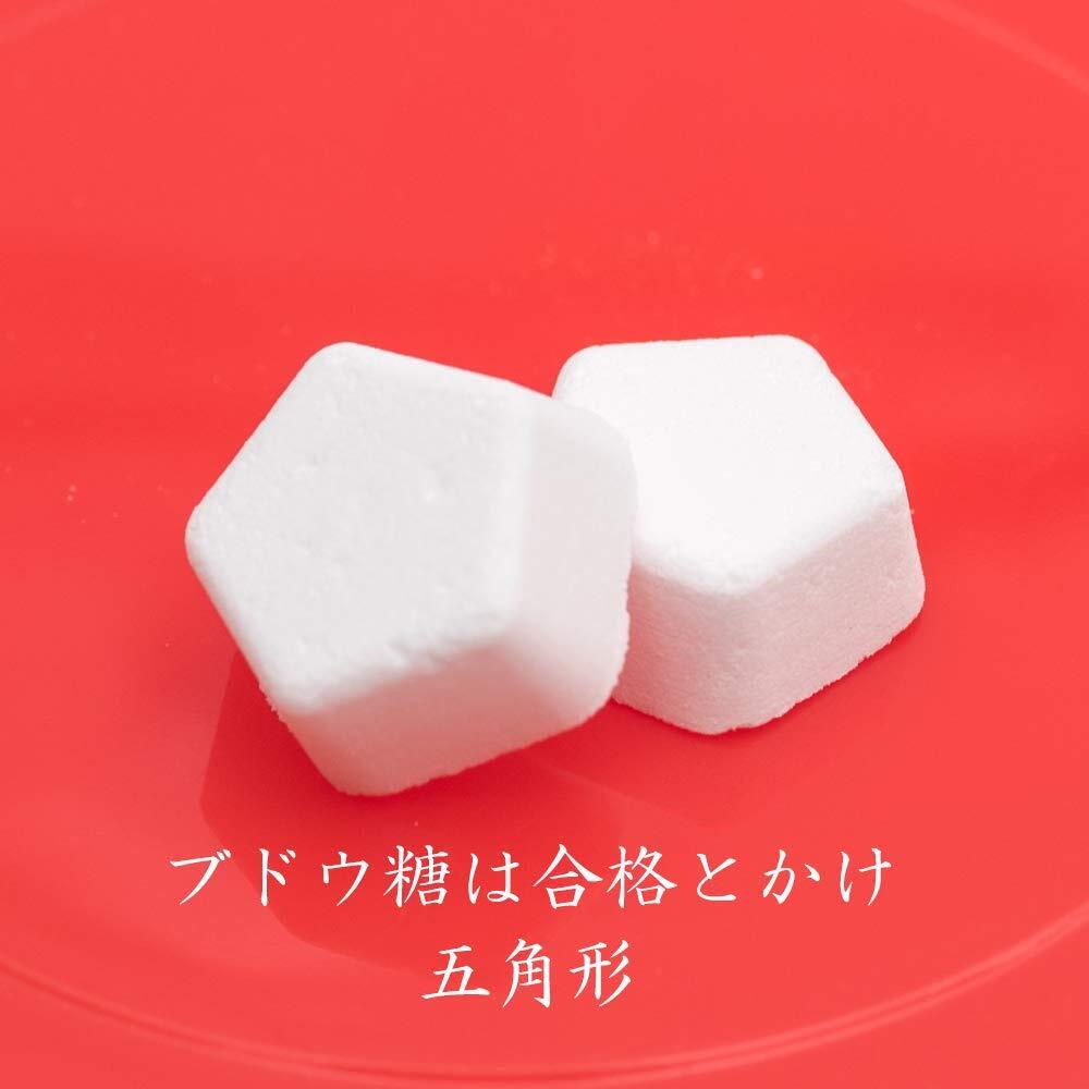 【縁起のいい五角形】ブドウ糖は合格とかけ、五角形にしました。口に入れた瞬間、ス~と口どけが良く、ほんのりヒンヤリする清涼感のある味わいです。飴のように口に残らないので、瞬時に補給できます。