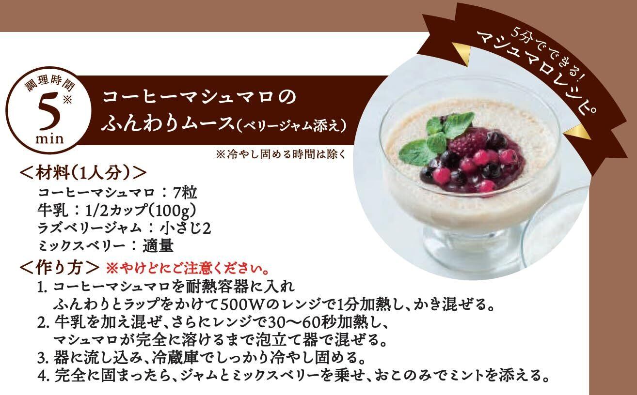ほろ苦いエスプレッソコーヒーが、マシュマロのマイルドな甘さと相性ぴったりです。