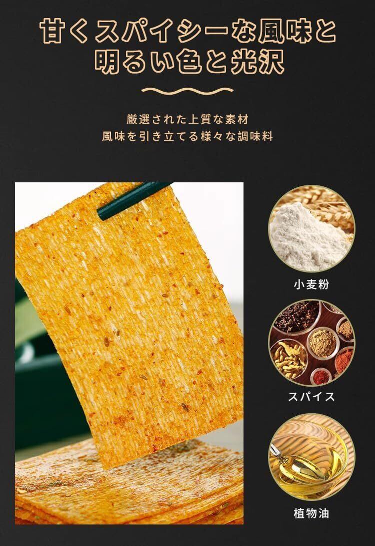 【ソフト】スパイシーストリップは、ソフトで少し噛み応えのある食感です。丁寧に作られたスパイシーチップスは、噛んだ時にある程度の弾力があり、スナック菓子を噛む喜びを十分に満足させると同時に、コクのある味をもたらします。