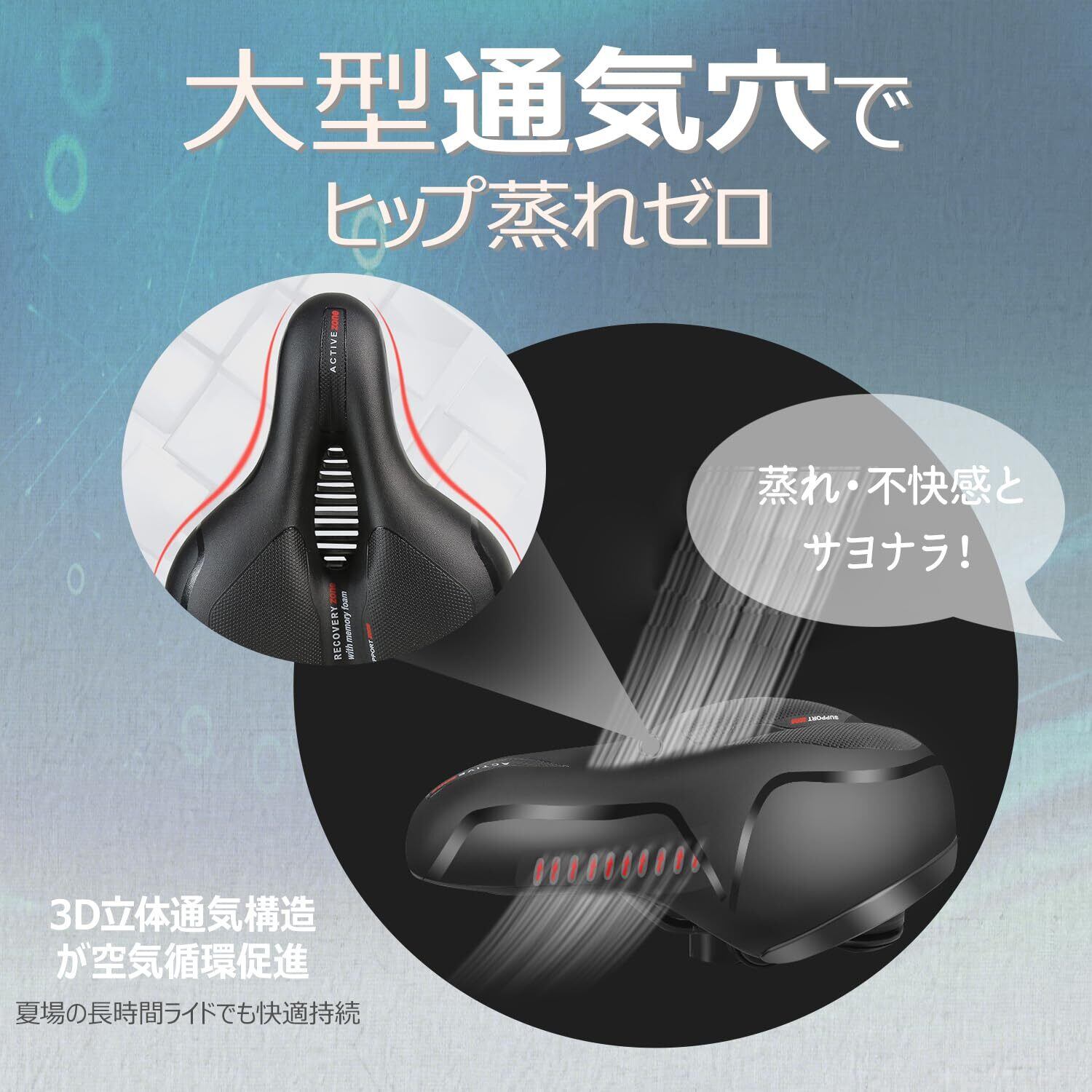自転車サドル 超極厚 穴開き 防水防裂 通気 防水カバー付き 専用工具付き 反射テープ 衝撃吸収 高密度クッションが圧力分散 お尻が痛くない 10,000回ライド耐久テスト済み ソフトクッションサドル クロスバイク マウンテンバイク ロードバイク ママチャリ
