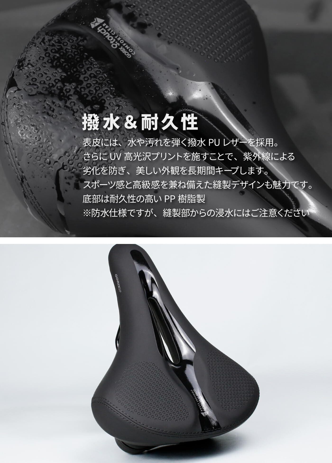 【究極の快適性】最大60mm厚の高反発ポリウレタンフォームを贅沢に使用! クッションのみで振動を優しく吸収し、長距離走行によるお尻と腰の負担を大幅に軽減します。「もうサドル沼で悩まない」乗り心地を提供します。