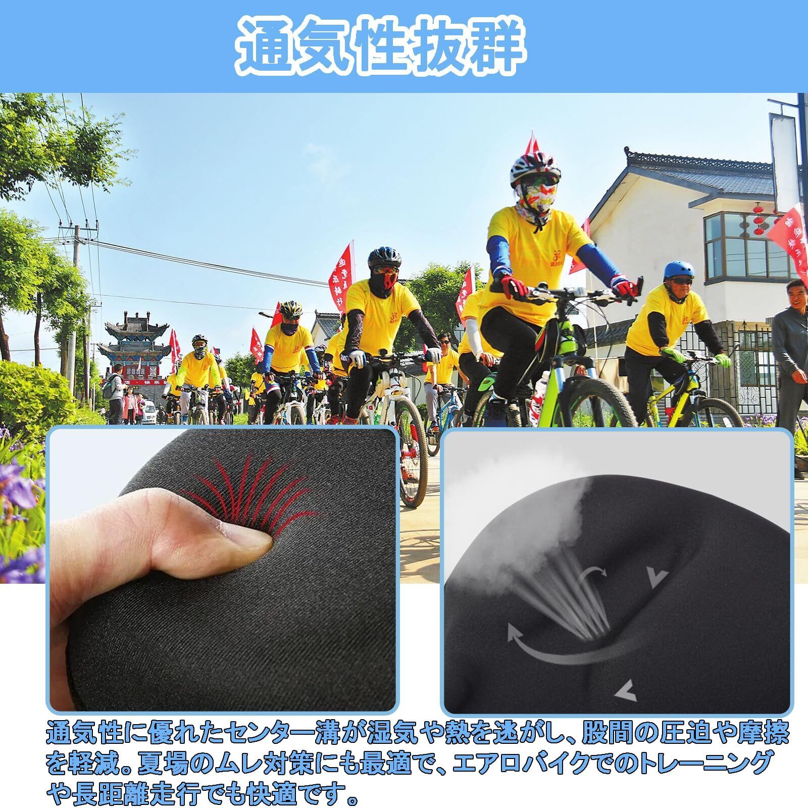 3. 【通気性抜群の中央溝でムレを解消】 通気性に優れたセンター溝が湿気や熱を逃がし、股間の圧迫や摩擦を軽減。夏場のムレ対策にも最適で、エアロバイクでのトレーニングや長距離走行でも快適です。