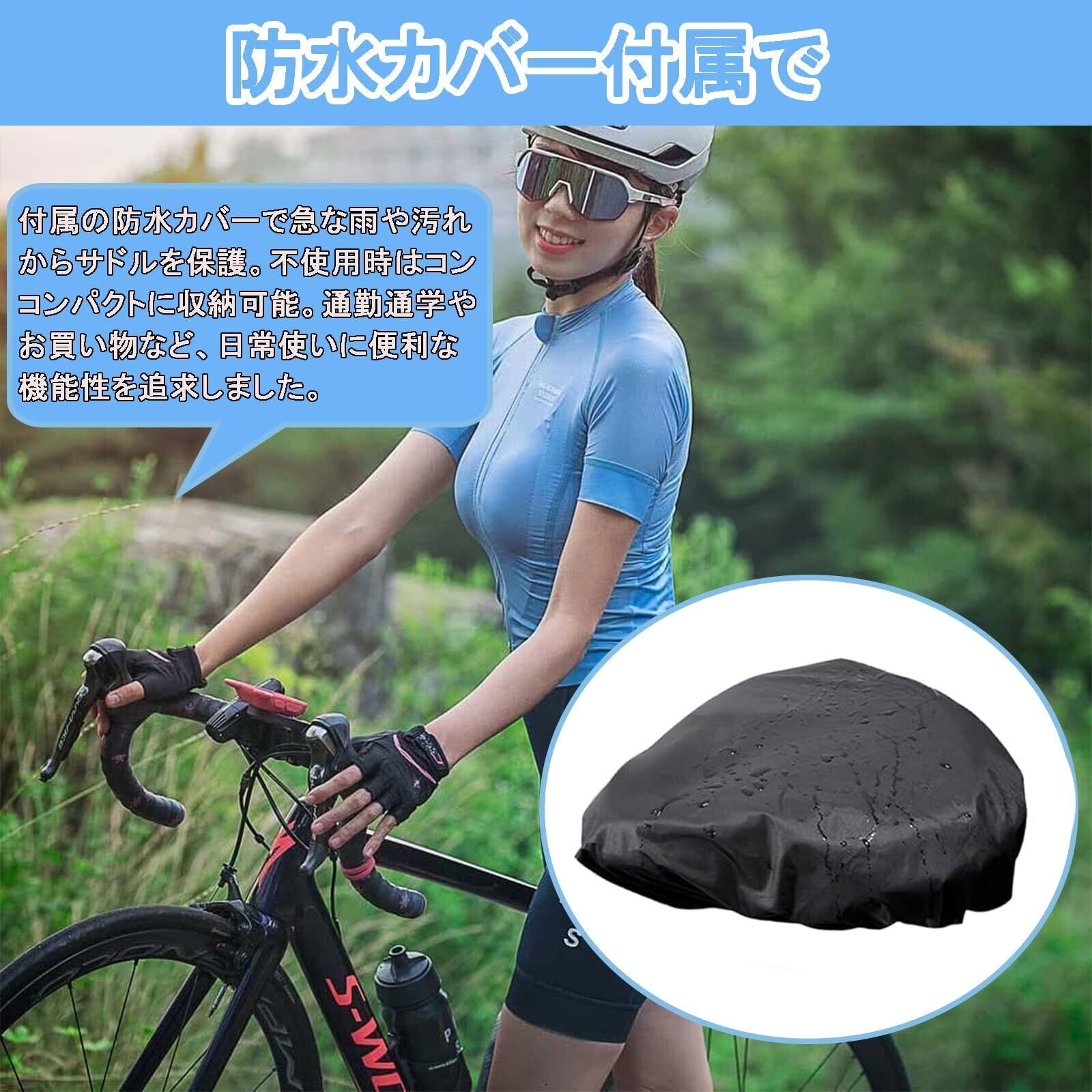 5. 【防水カバー付属で突然の雨も安心】 付属の防水カバーで急な雨や汚れからサドルを保護。不使用時はコンコンパクトに収納可能。通勤通学やお買い物など、日常使いに便利な機能性を追求しました。