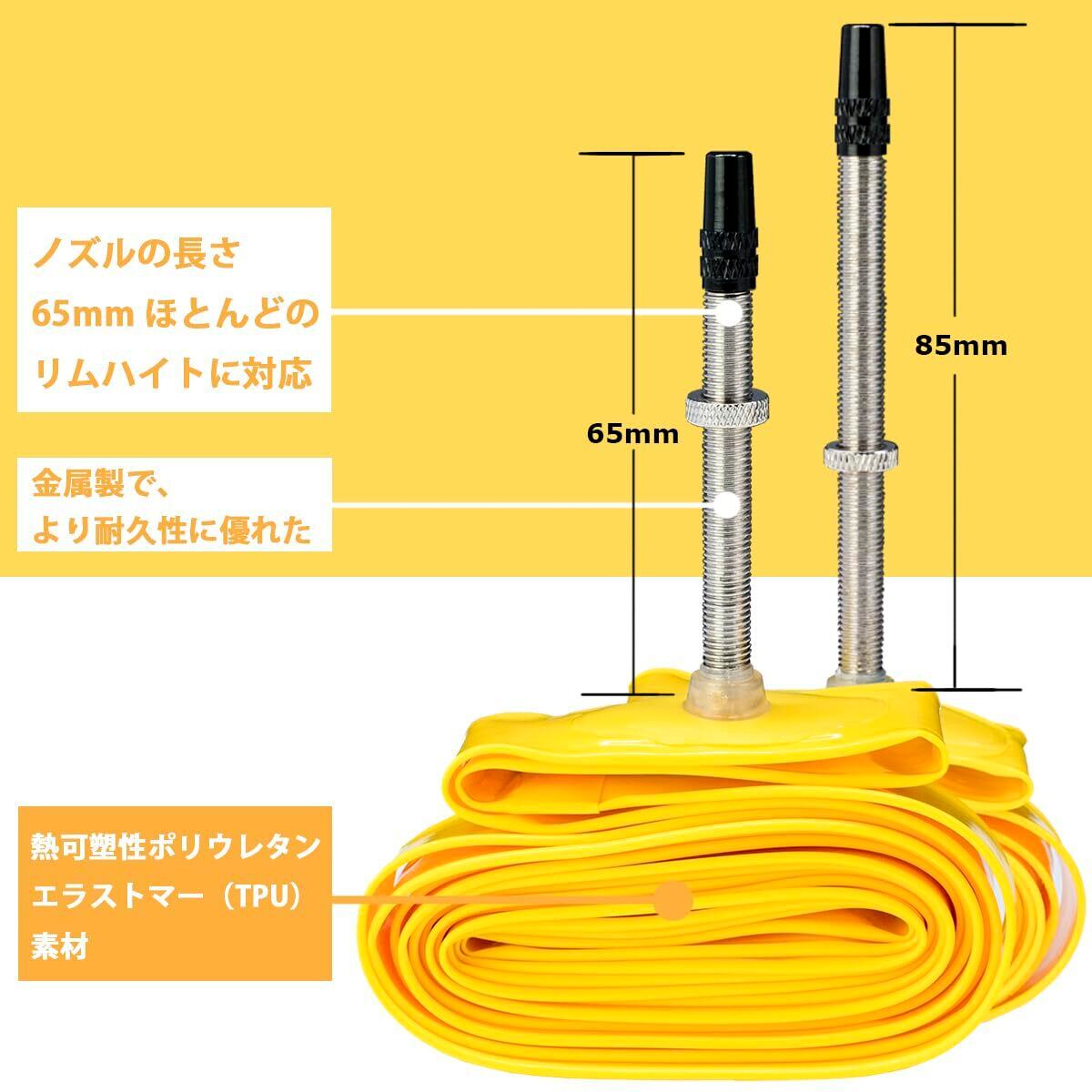 【取り付けが簡単】特に市場調査と調査に基づいてバルブステムの長さを再設計しました。多くのバルブステムはハードな取り付けに問題があることがわかりました。 その場合、65mmと85mmをお選びいただけます。これらの新しいデザインにより、当社のTPUインナーチューブは、他の通常の標準的なTPUチューブよりも簡単に取り付けられ、組み立てや分解中に手をより快適にすることができます
