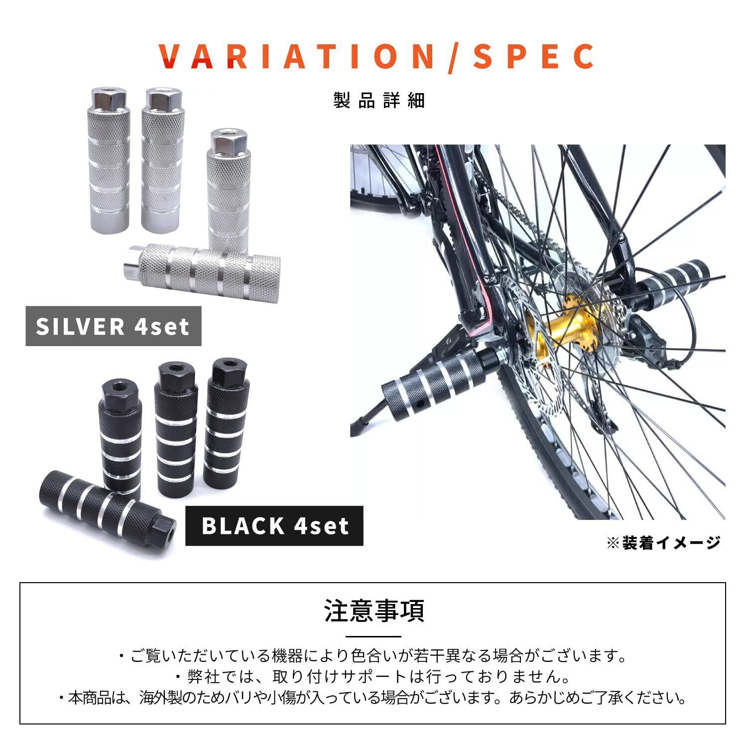 この自転車ハブステップは、4本セットとなっています。bmxペグ、自転車 ステップ、ギヤガードにもお使いいただけ、自転車の変速機(ディレーラー)部分の保護にも役立つカスタムパーツです