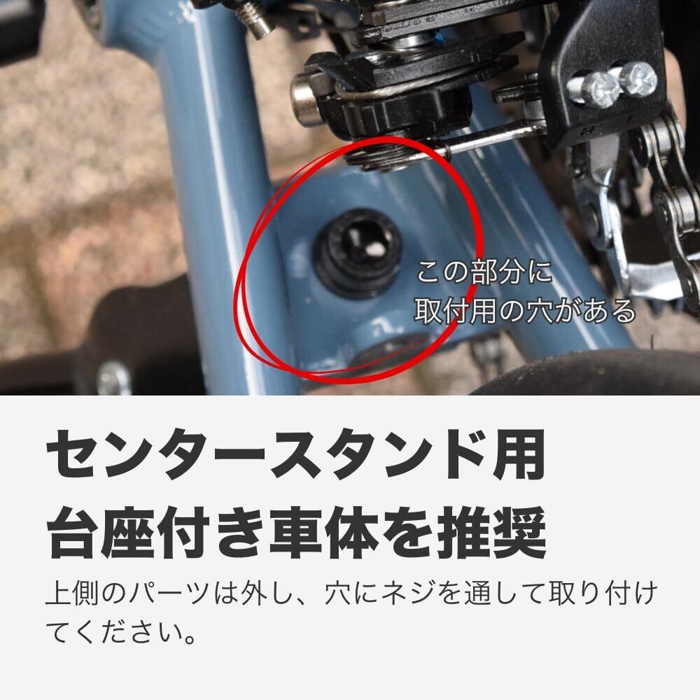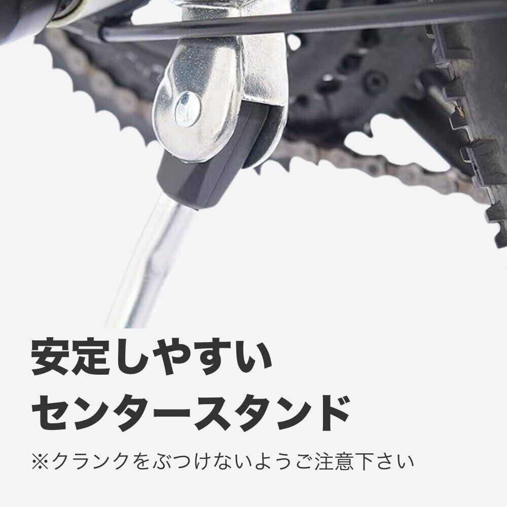長さの調節が可能な軽量センタースタンド。調整範囲が広いので、ミニベロからクロスバイクまで幅広く対応
