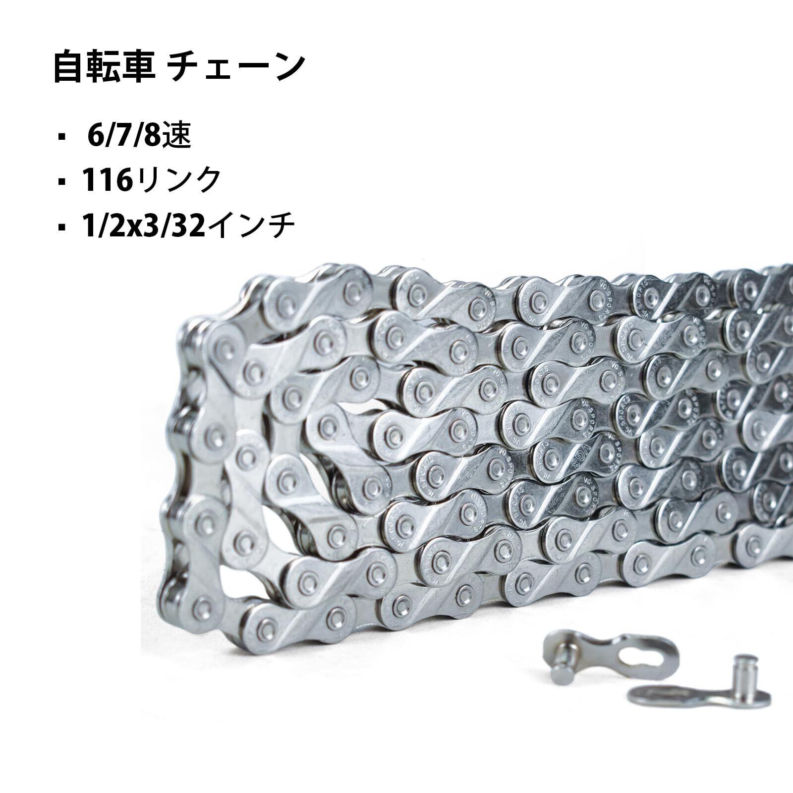 自転車チェーン 6/7/8速汎用 1/2 x 3/32インチ 116リンク 変速自転車用チェーン 自転車 部品 特殊合金鋼 ロードバイク マウンテンバイク対応 シルバー