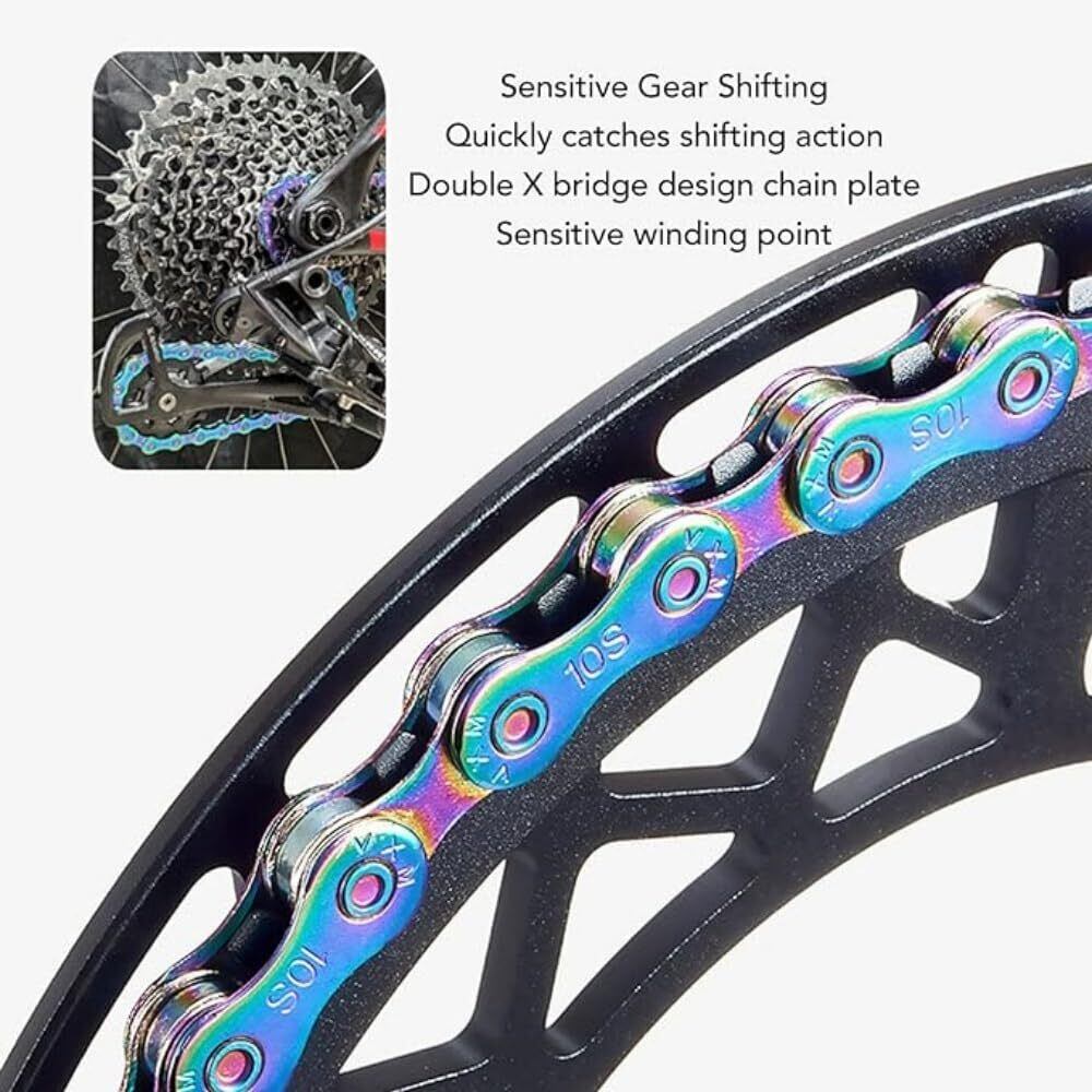 【スムーズなギアチェンジ】当社のチェーンのダブルXブリッジデザインにより、毎回シームレスなシフトを体験し、失敗のないサイクリングの旅のために正確なギアエンゲージメントを保証します。