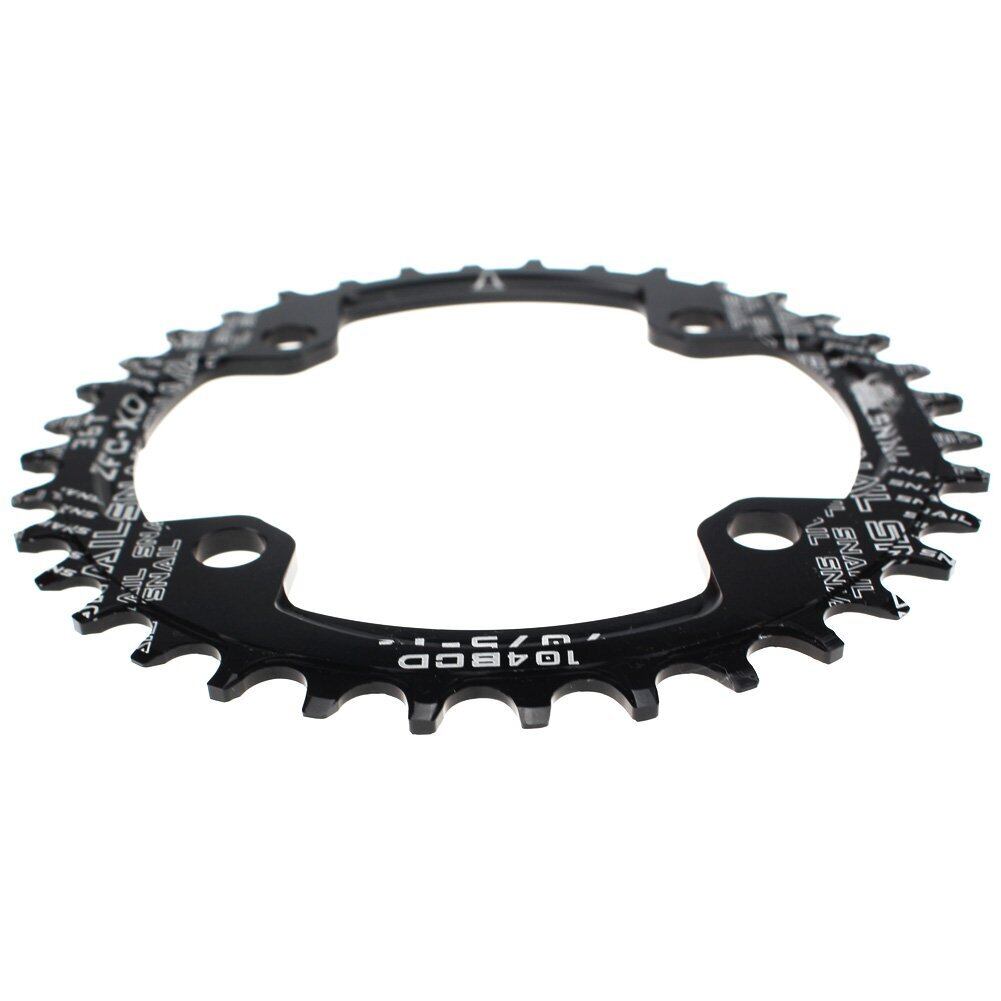 チェーンリング 30T 32T 34T 36T 38T 104BCD Mutte MTB レース バイク シングル 狭い 広い ラウンド チェーンリング (ブラック, アルミニウム合金)