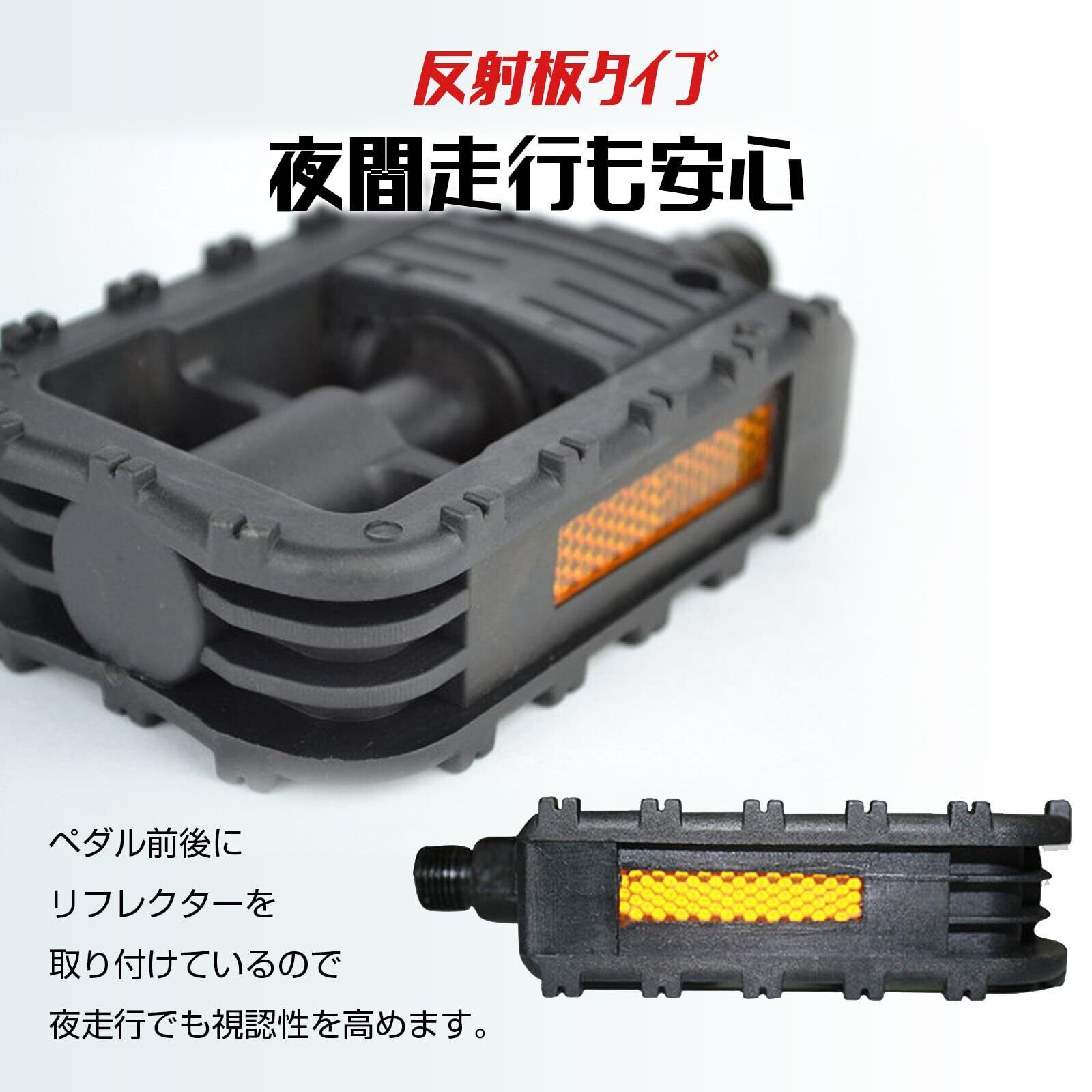 【夜間走行に嬉しい反射板付き】ペダルの両サイドに反射板を装備し、夜間や暗所での視認性を向上。走行中の安全性をさりげなくサポートします。