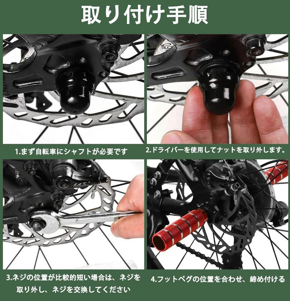 【商品名】自転車用アルミニウムハブステップ(2個セット)【商品仕様】サイズ:10cm×2.8cm×1cm材質:高品質のアルミニウム合金製セット内容:2個特徴:耐久性、耐食性、錆びにくい使いやすさ:手で直接締め付けるか、他の工具を使って締め付けることができます滑り止めデザイン:強力な滑り止めストリップが内蔵されており、転倒の心配がありません適用範囲:ほとんどすべての自転車に取り付け可能。バイクにも使用できます(ご購入前に製品のサイズをご確認ください)【商品説明】自転車に乗る際、スムーズに乗り降りするために便利なアイテムが登場しました!この自転車用アルミニウムハブステップは、高品質のアルミニウム合金製で耐久性があり、錆びにくい特徴があります。手で直接締め付けるか、他の工具を使って締め付けることができるため、取り付けも簡単です。さらに、表面には強力な滑り止めストリップが内蔵されており、転倒の心配がありません。安心して自転車に乗ることができます。この製品は普遍的で、ほとんどすべての自転車に取り付けることができます。また、バイクにも使用可能です。自転車やバイクのカスタマイズにもおすすめです。自転車用アルミニウムハブステップは、自転車のパーツとしてだけでなく、自転車置き場やディレイラーガードとしても使用できます。自転車愛好家や自転車をより便利にするためのアイテムをお探しの方に最適です。自転車のステップを手軽にアップグレードしたい方、クロスバイクなどのカスタムをお考えの方におすすめの商品です。ぜひこの機会に自転車用アルミニウムハブステップをお試しください。